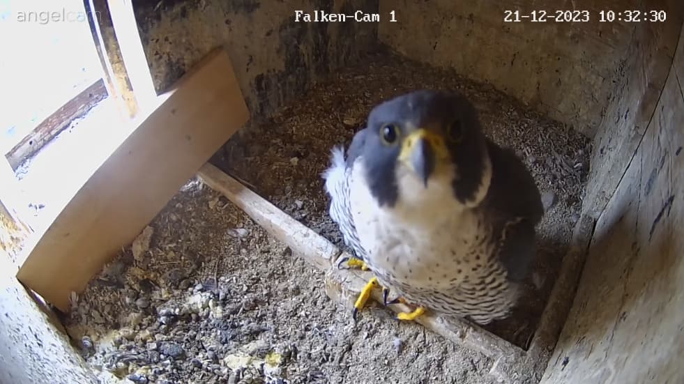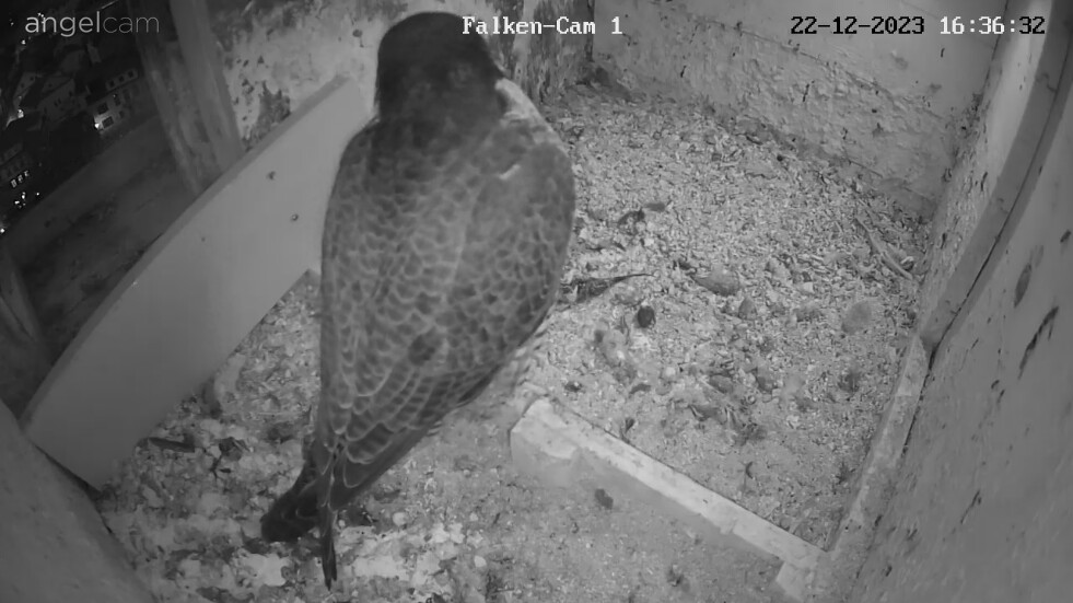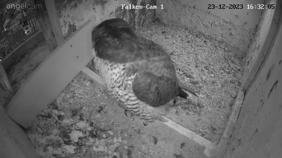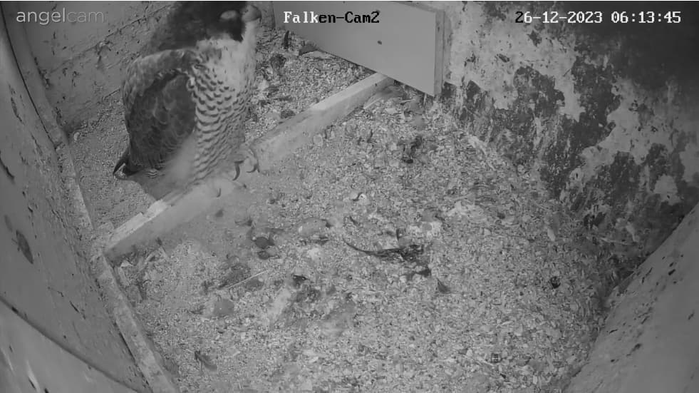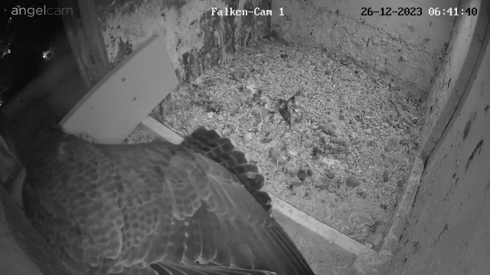 Guten Morgen! Am Dienstag macht Wanda tatsächlich mal etwas anders als sonst: Sie sitzt lange am Brett, bevor sie sich dort reckt und dann hinausgeht. Einen schönen zweiten Weihnachtsfeiertag und viele Grüße!