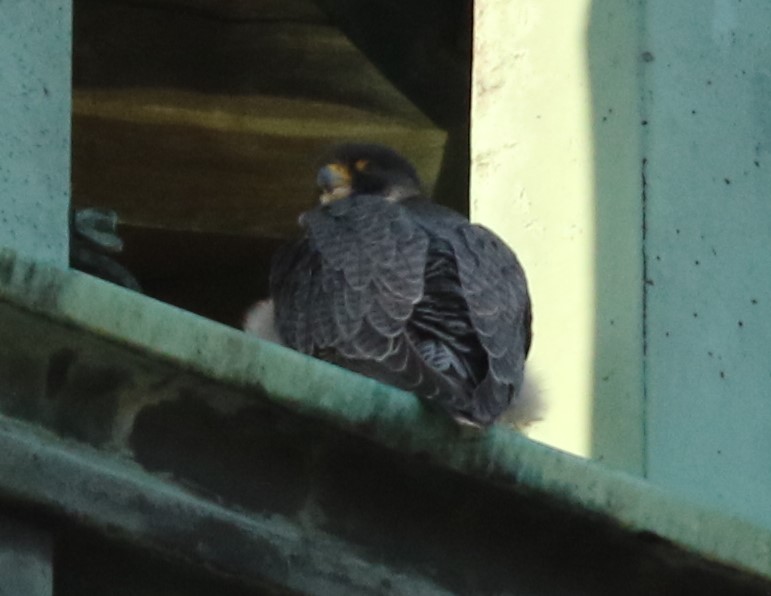 Der „jemand“ heute Nachmittag war Falco, der es sich am Abflugbrett gemütlich gemacht hatte.