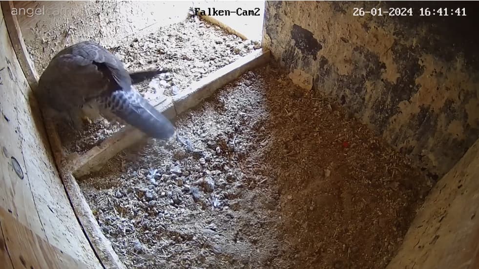 Vielleicht probeweises Zusammenscharren von Nistmaterial… Ein bißchen davon braucht es ja schon, um eine wenigstens kleine Mulde zu schaffen, damit die Eier bei der Brutablösung nicht davonrollen.