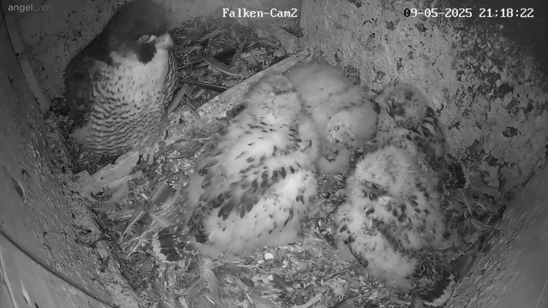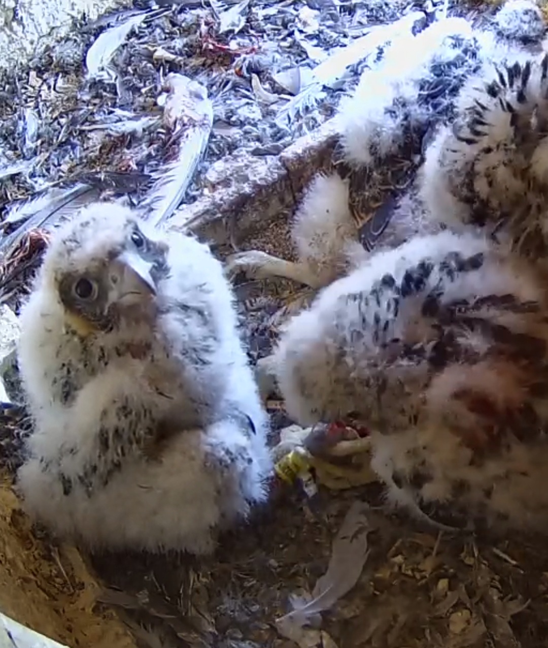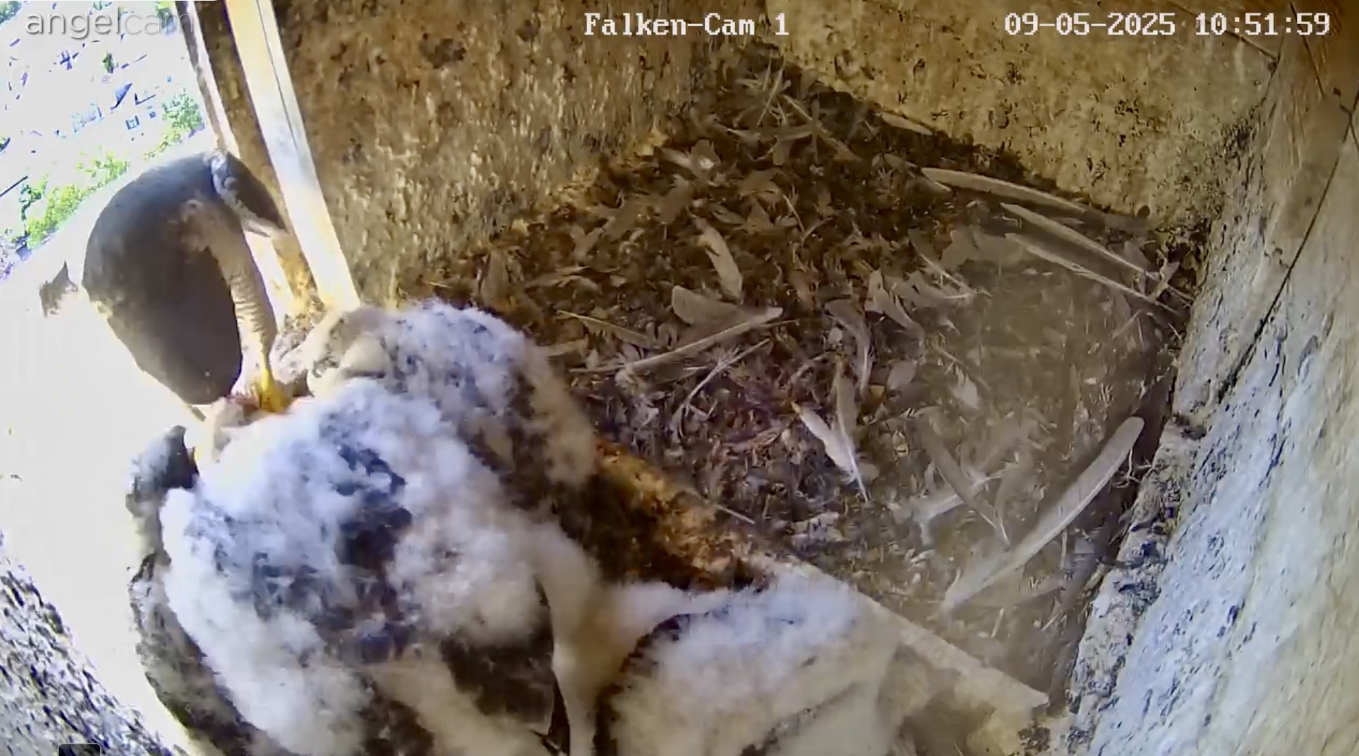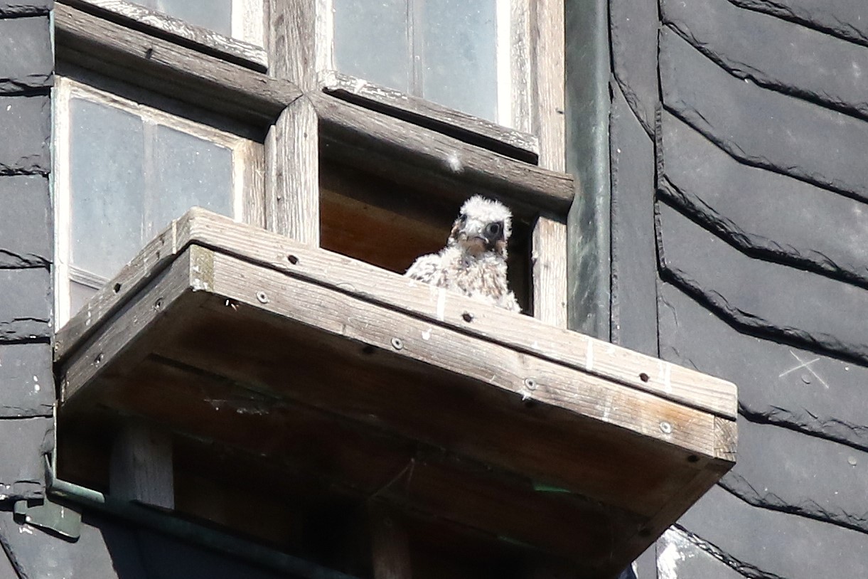 Ich habe mal nachgeschaut: letztes Jahr sind die Jungfalken am 28. Mai ausgeflogen, und dieses Jahr sind sie fast zur gleichen Zeit geschlüpft wie 2024, d.h. noch etwa 2 1/2 Wochen, bis sie ausgewachsen sein sollten.