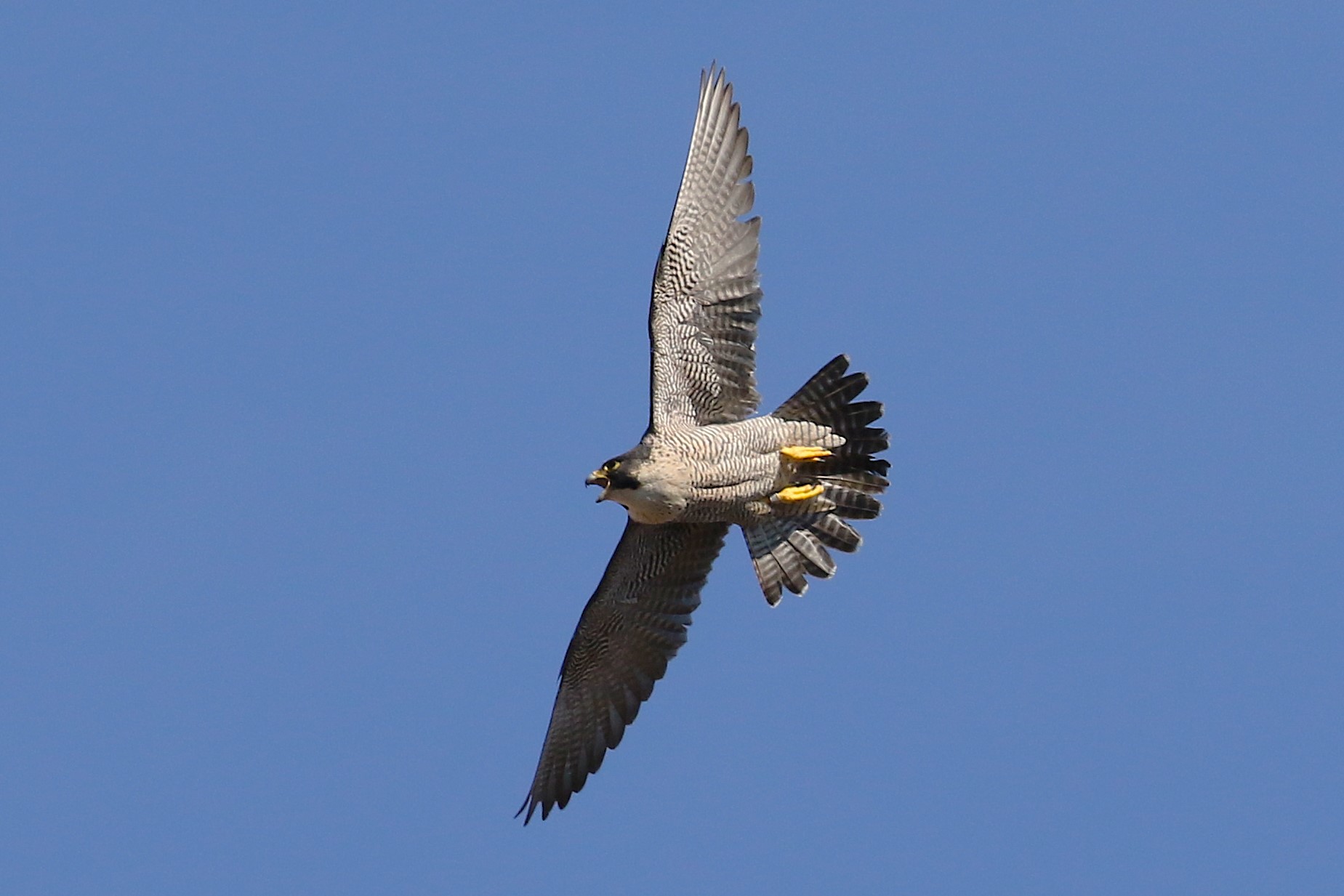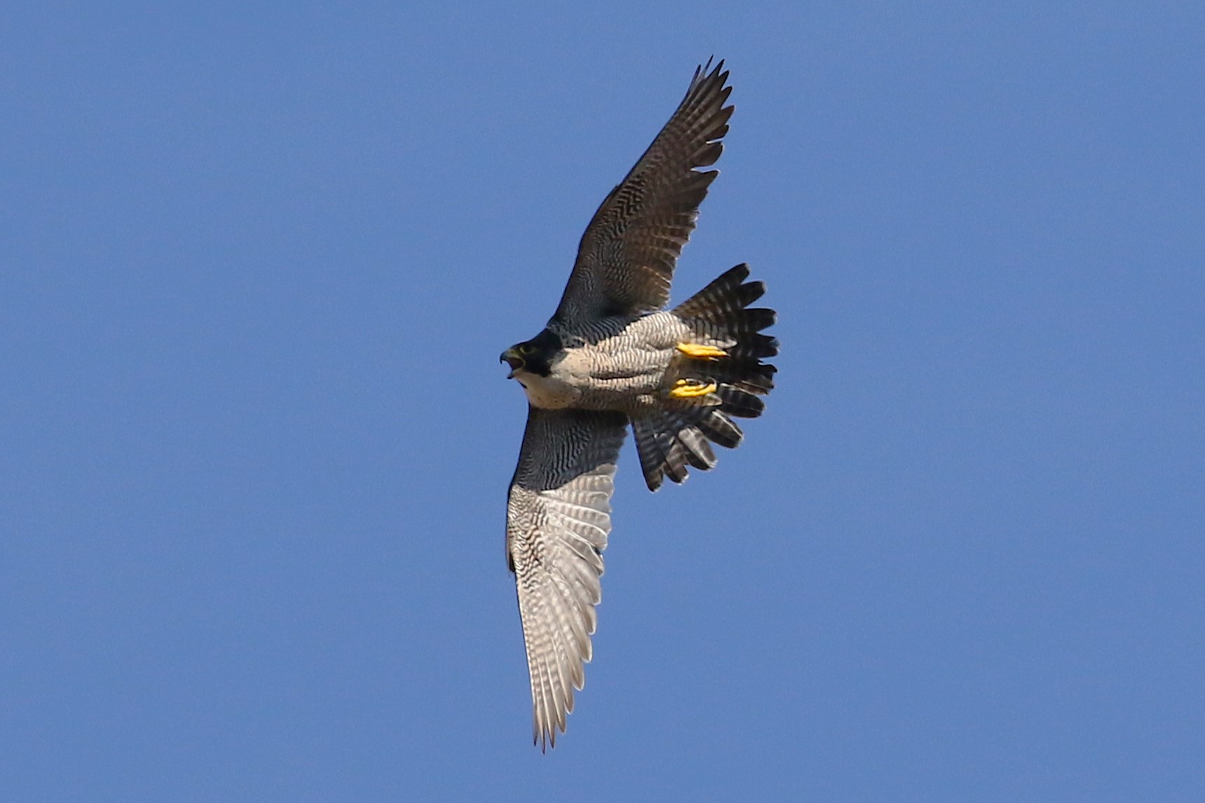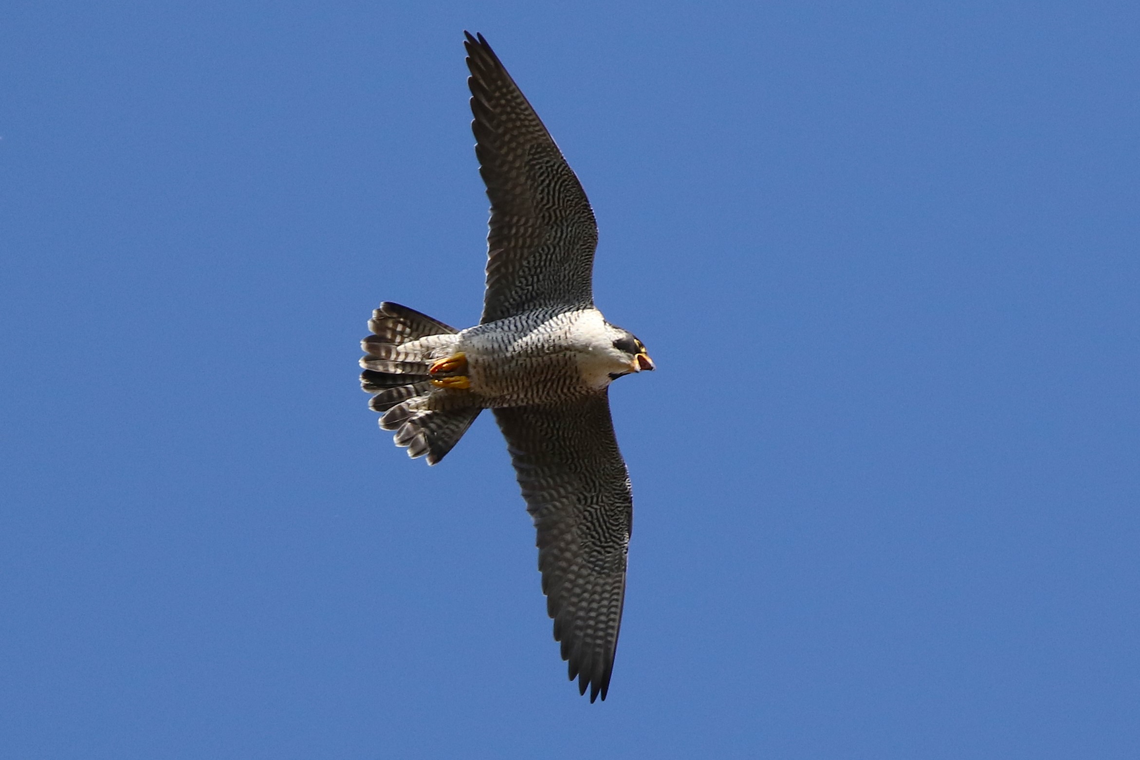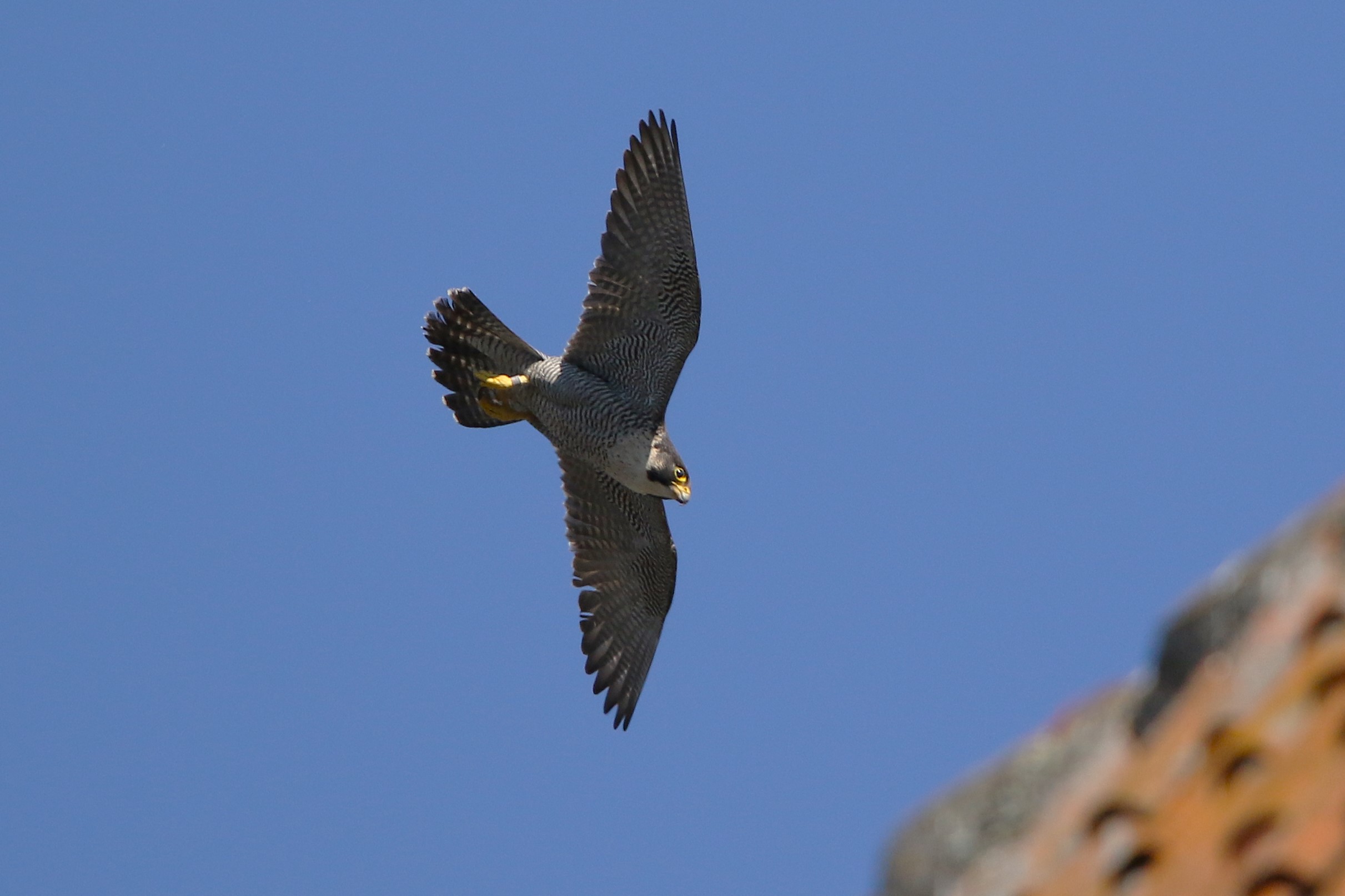 Unvermittelt flog sie Richtung Osten los. Nur wenige Sekunden später kam Falco von dort mit Beute hereingesegelt.