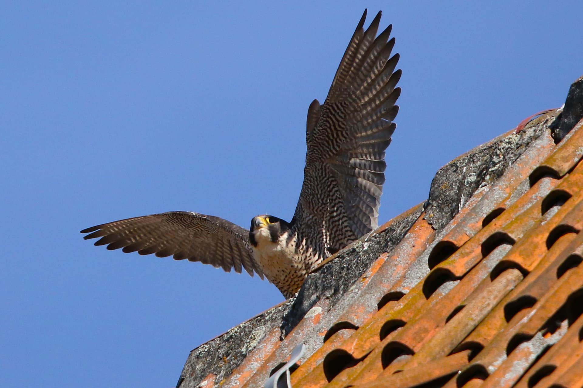 Nach einer geraumen Weile erhob sie ganz erregt ihre Flügel und starrte auf irgendetwas, das sich der Morizkirche näherte. (Sehr schön auf dieser Aufnahme finde ich den Schattenwurf ihrer Flügelspitzen, der ihr etwas tigerhaftes verleiht).