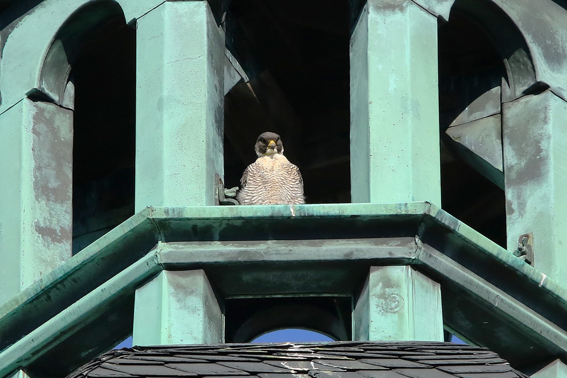 Ich war glücklich über die vielen schönen Aufnahmen und dachte schon, dass jetzt erstmal eine Zeit lang nichts mehr groß passieren würde, als Falco schon wieder zurückkehrte und nun ebenfalls in der Kuppel der Morizkirche landete.