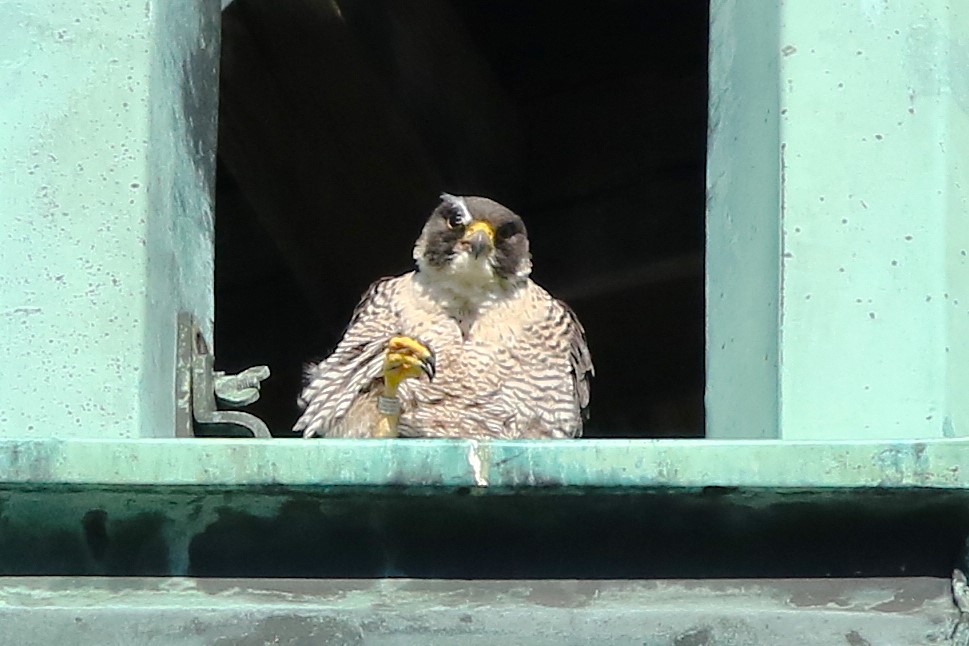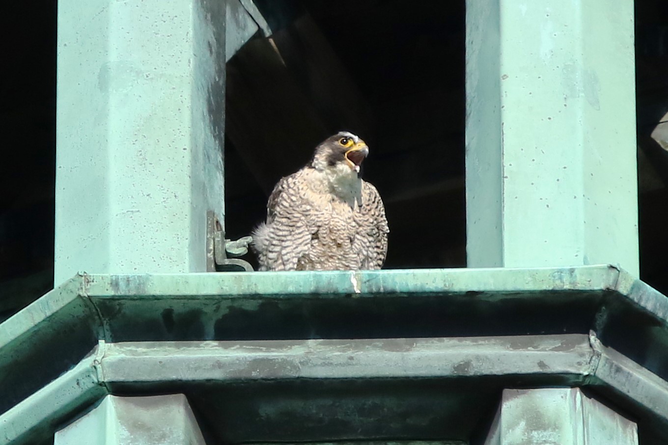 Wie schon am Mittwoch flog Falco gerade los, als ich zur Morizkirche kam. Ich beobachtete daher zunächst Wanda, die wieder in der Kuppel Platz genommen hatte.