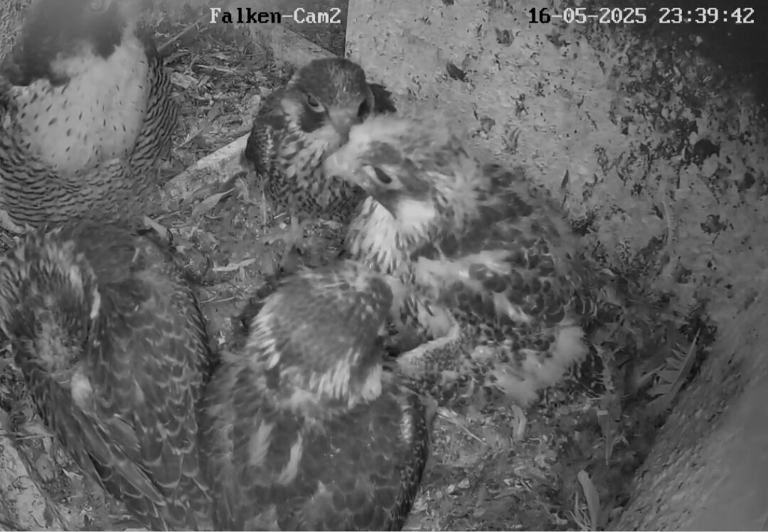 Naja, vor Adler, Uhu, Fuchs und Marder sollten die Jungfalken schon auf der Hut sein.