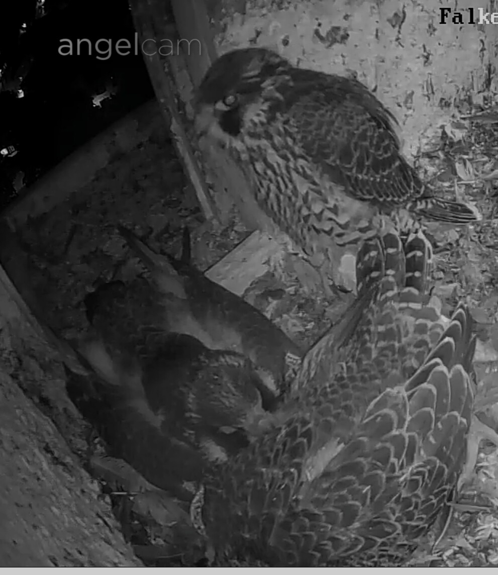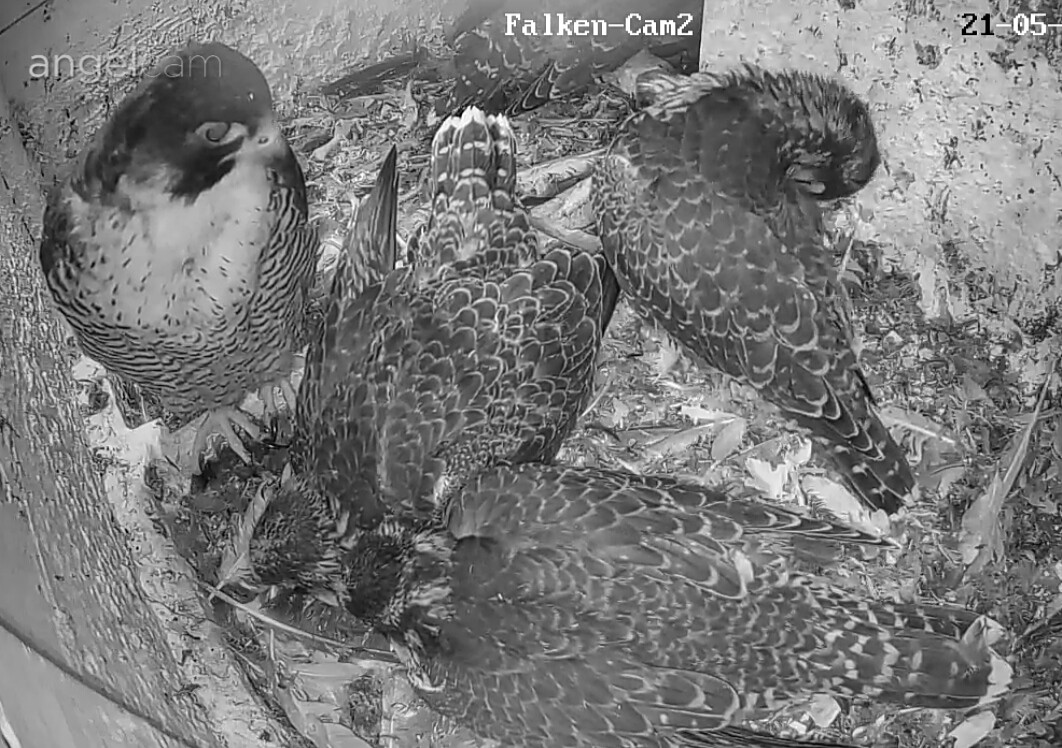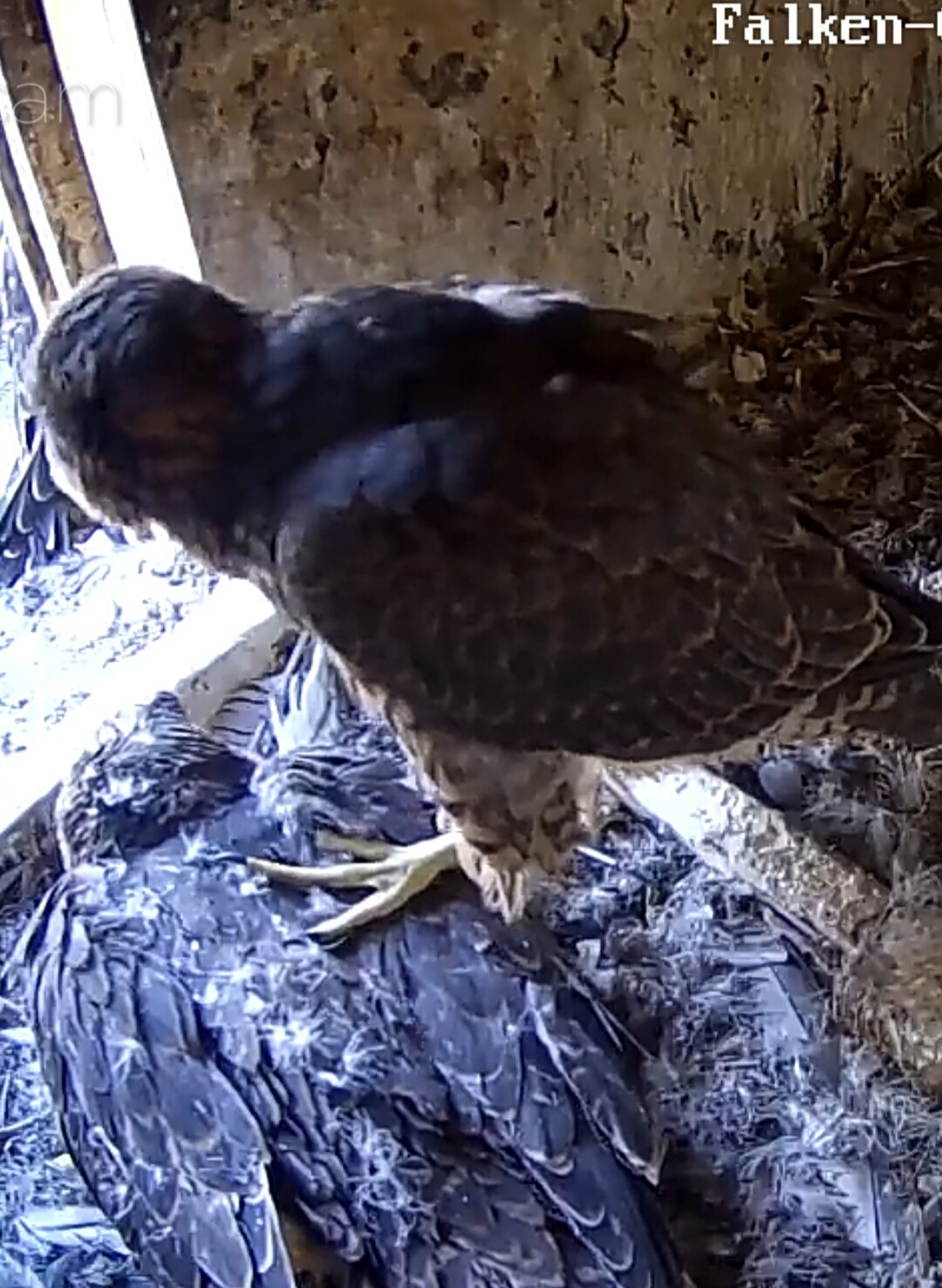 Also ist einer der Jungfalken ausgeflogen worden? Sozusagen zwangsweise flügge!