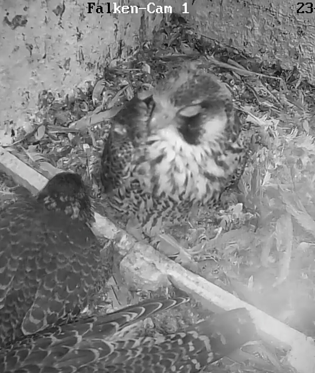Ich kenn unsere Wanderfalken sehr gut und kümmere mich teilweise etwas mit um die Betreuung des Kastens. Die nächsten Tage werden auf jeden Fall spannend!