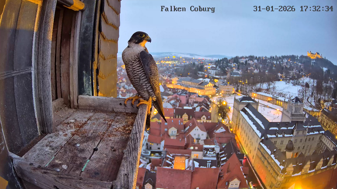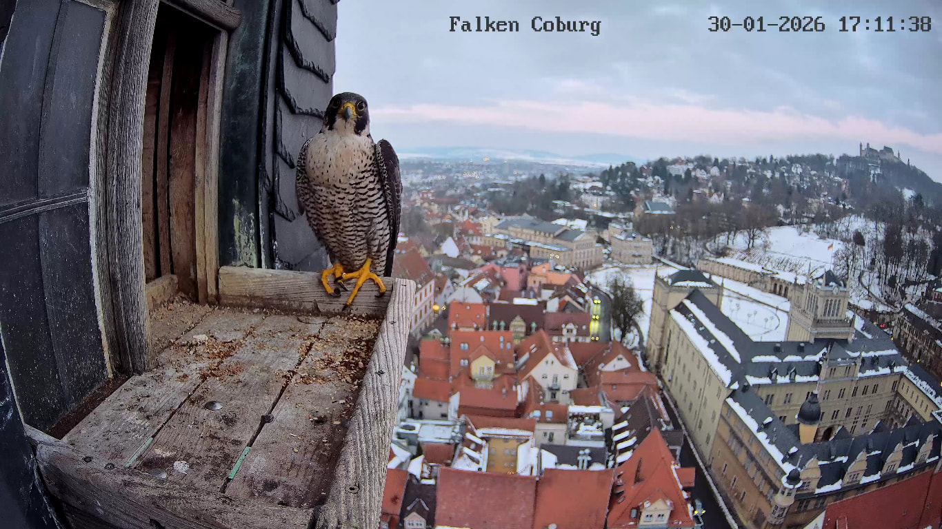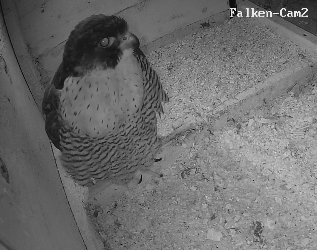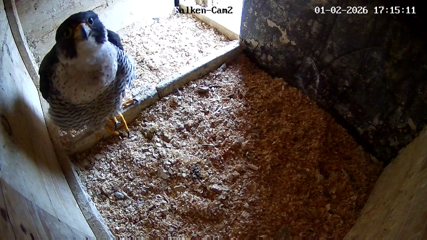 Gerade eben war Falco? (ein Ring ist nicht zu sehen) kurz auf der Plattform zu sehen und man konnte kurz ein paar einzelne Rufe hören. Die Rufe klangen etwas kläglich aber nicht schrill.