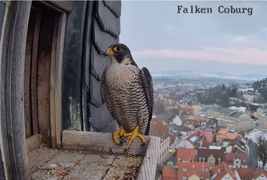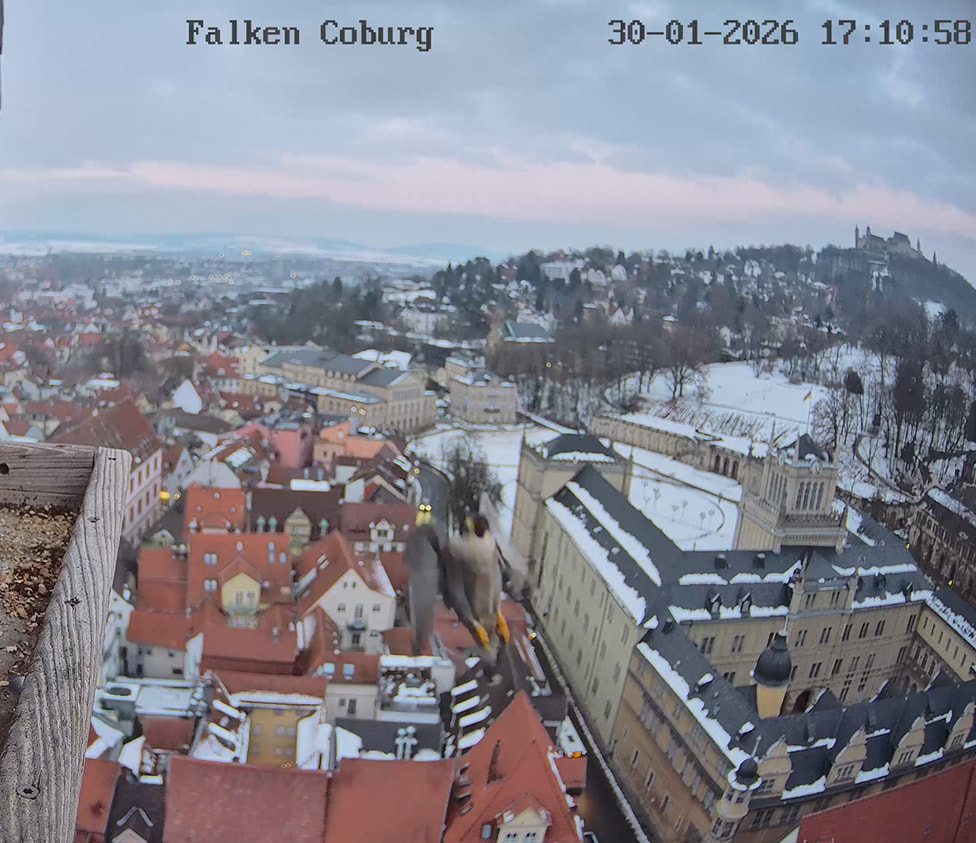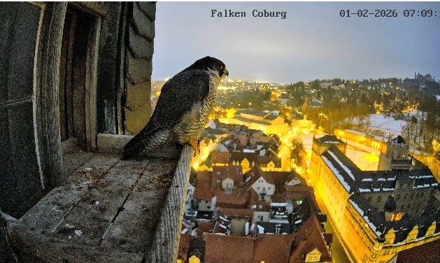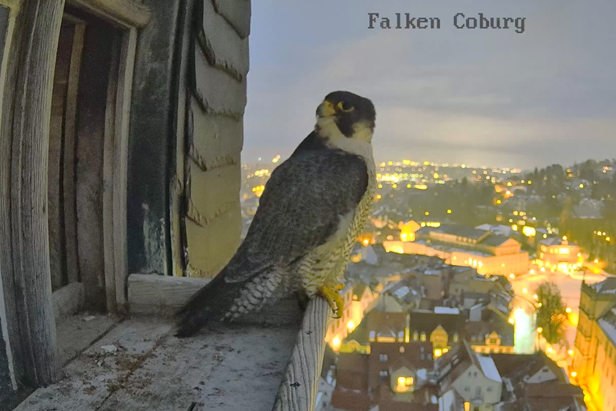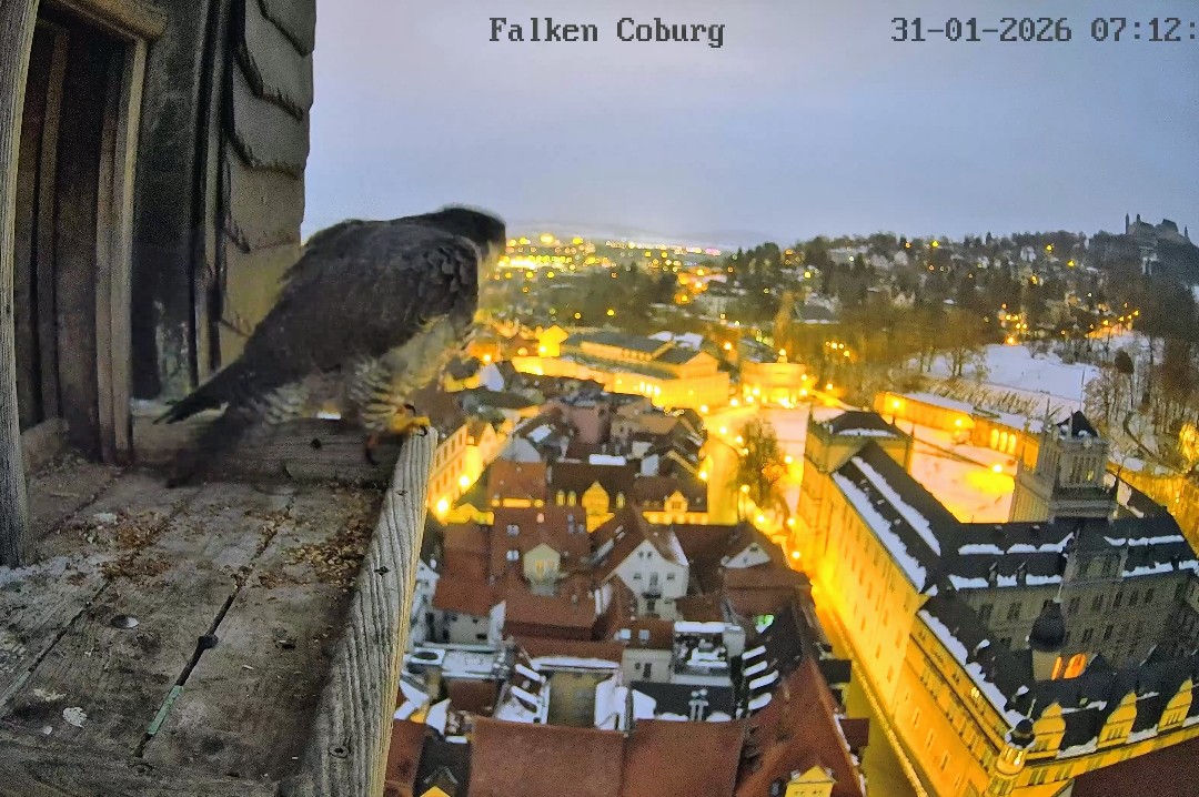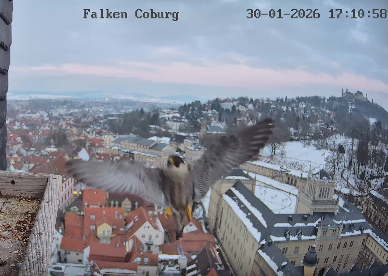 Gerade eben war Falco? (ein Ring ist nicht zu sehen) kurz auf der Plattform zu sehen und man konnte kurz ein paar einzelne Rufe hören. Die Rufe klangen etwas kläglich aber nicht schrill.