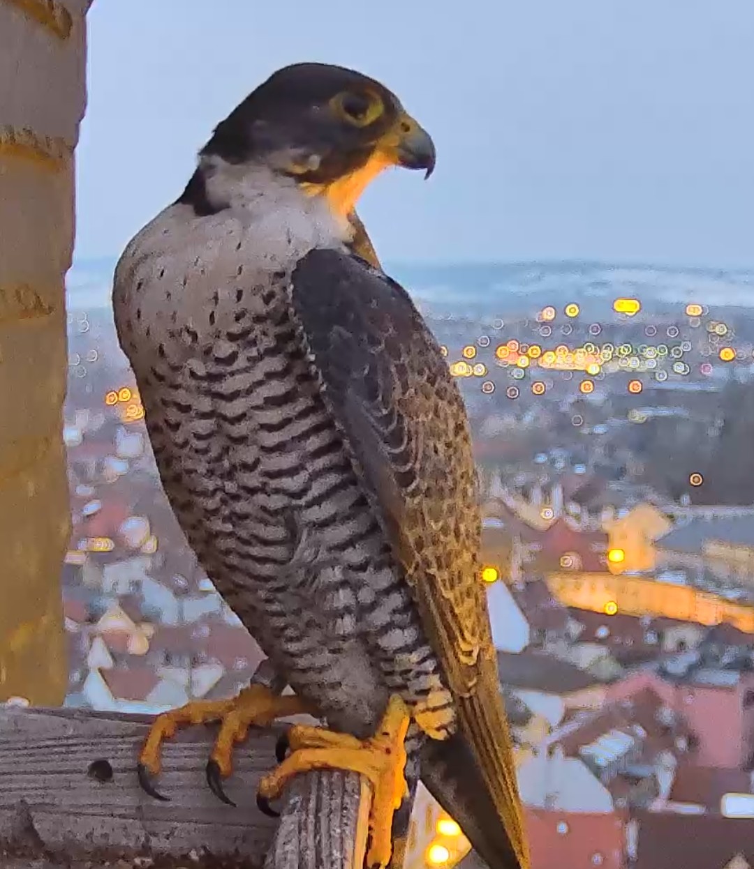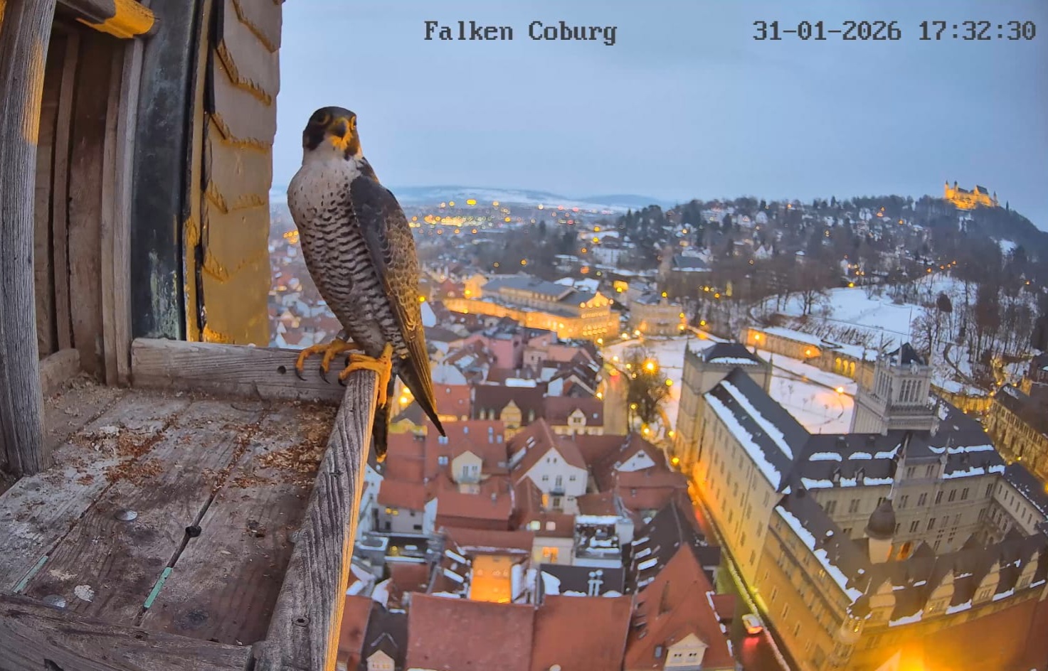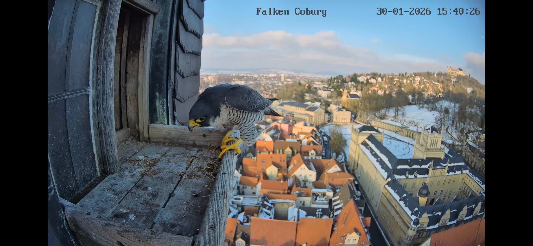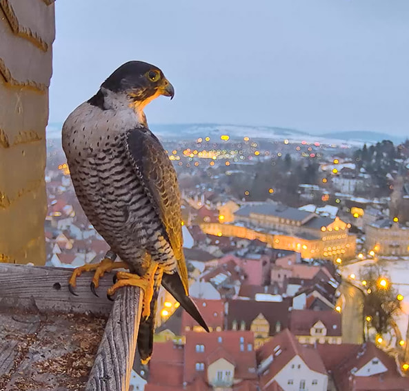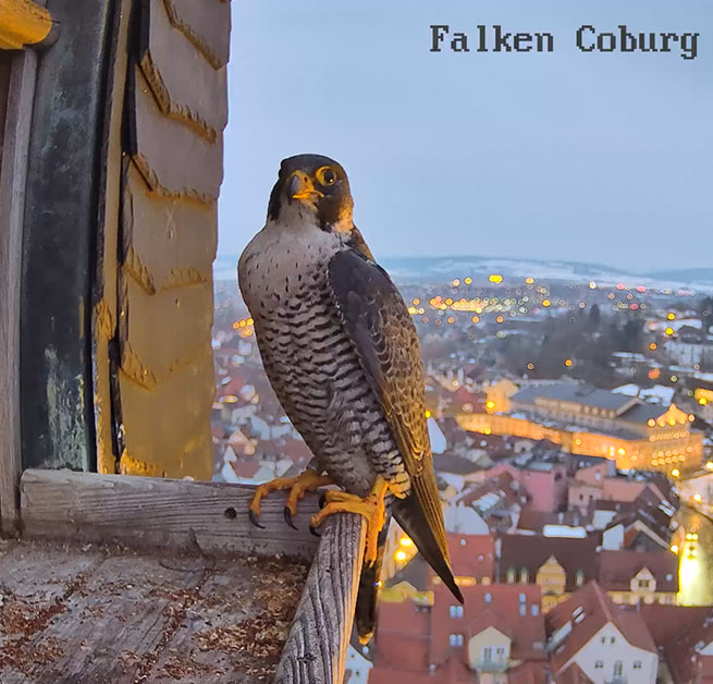 Gerade eben war Falco? (ein Ring ist nicht zu sehen) kurz auf der Plattform zu sehen und man konnte kurz ein paar einzelne Rufe hören. Die Rufe klangen etwas kläglich aber nicht schrill.
