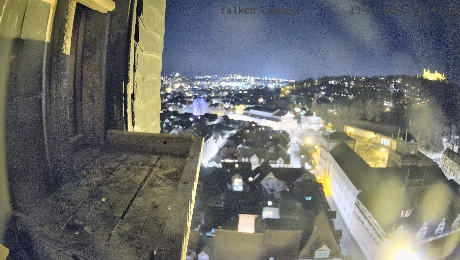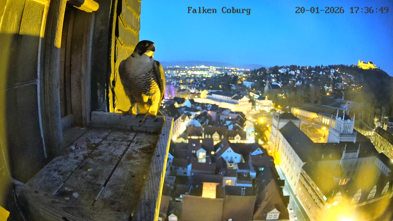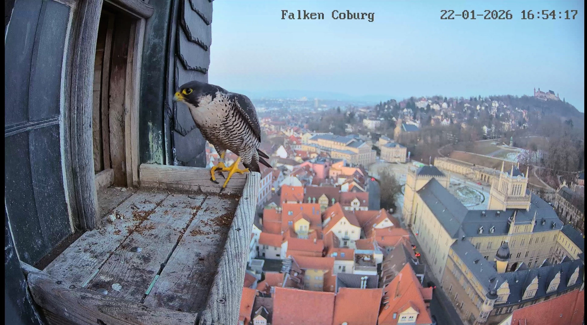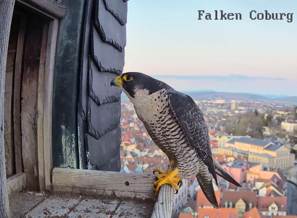 … was für eine tolle Ansicht und Coburg von oben noch dazu. Ich bin wirklich begeistert. Der Balkon sieht irgendwie viel kleiner aus, als man sich das vorgestellt hat. Wenn man sich vorstellt, dass da 3 so Jungfalken drauf rum hüpfen… der Wahnsinn.