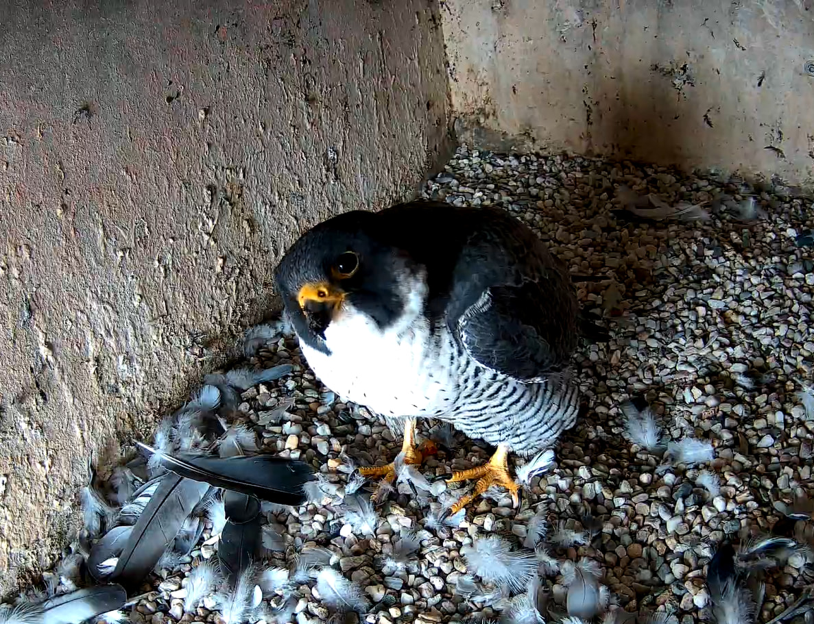 - wobei ich mir nun nicht ganz sicher bin: Von der Größe her auf dem Balkon ist es Petra aber der weißen Brust nach ist es Magnus. Petra’s Brust ist mehr getropft ![]()