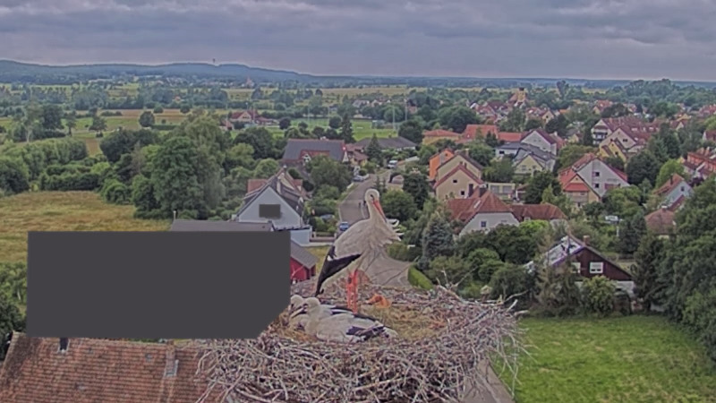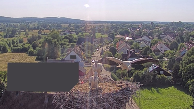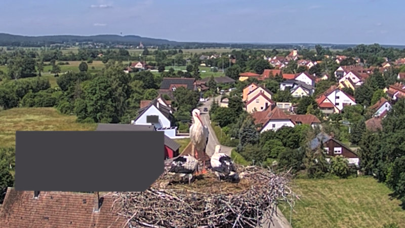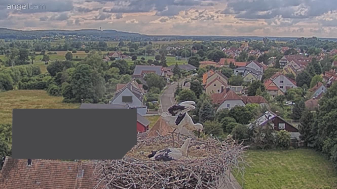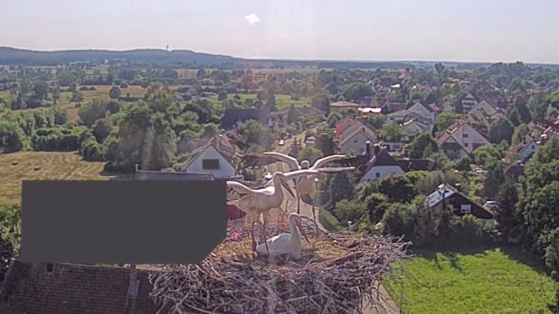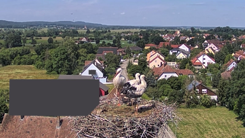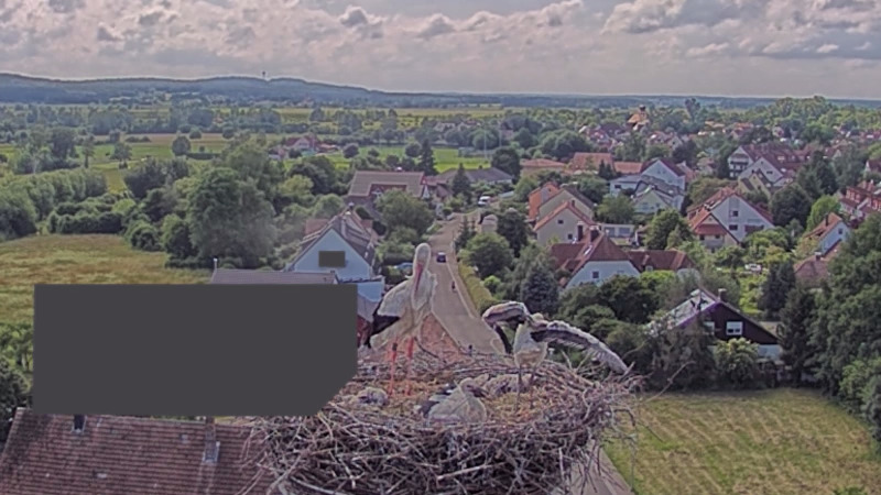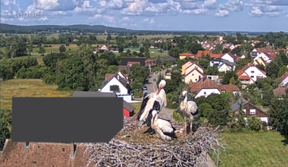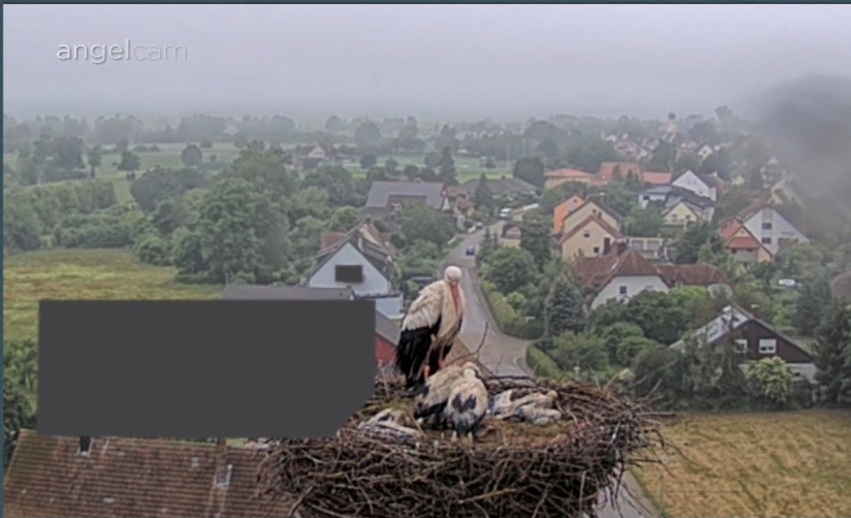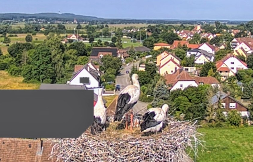Ich befürchte das auf der rechten Seite der Jungstorch nicht mehr lebt. Hinter dem Altstorch bewegen sich 2 junge.