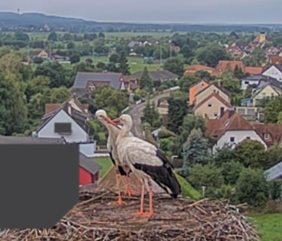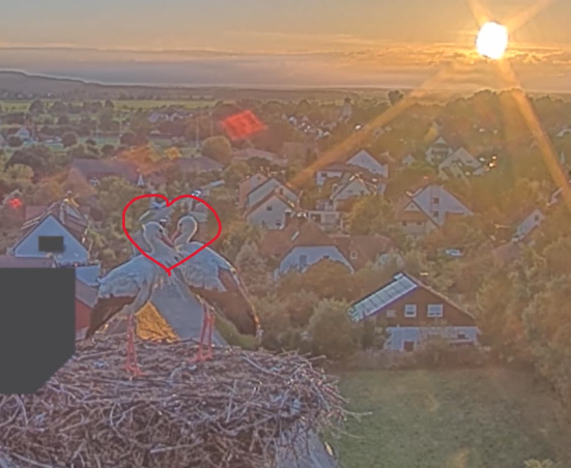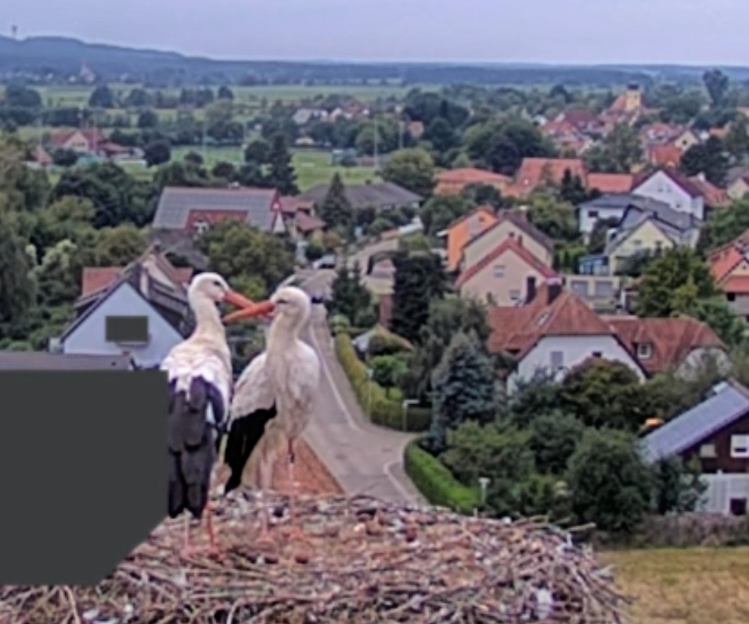 Die anstrengende Jungenaufzucht ist vorbei, die sind flügge und kommen nicht mehr zum Nest zurück. Nun können Jakob und Franzi liebevoll ihre Zweisamkeit pflegen.