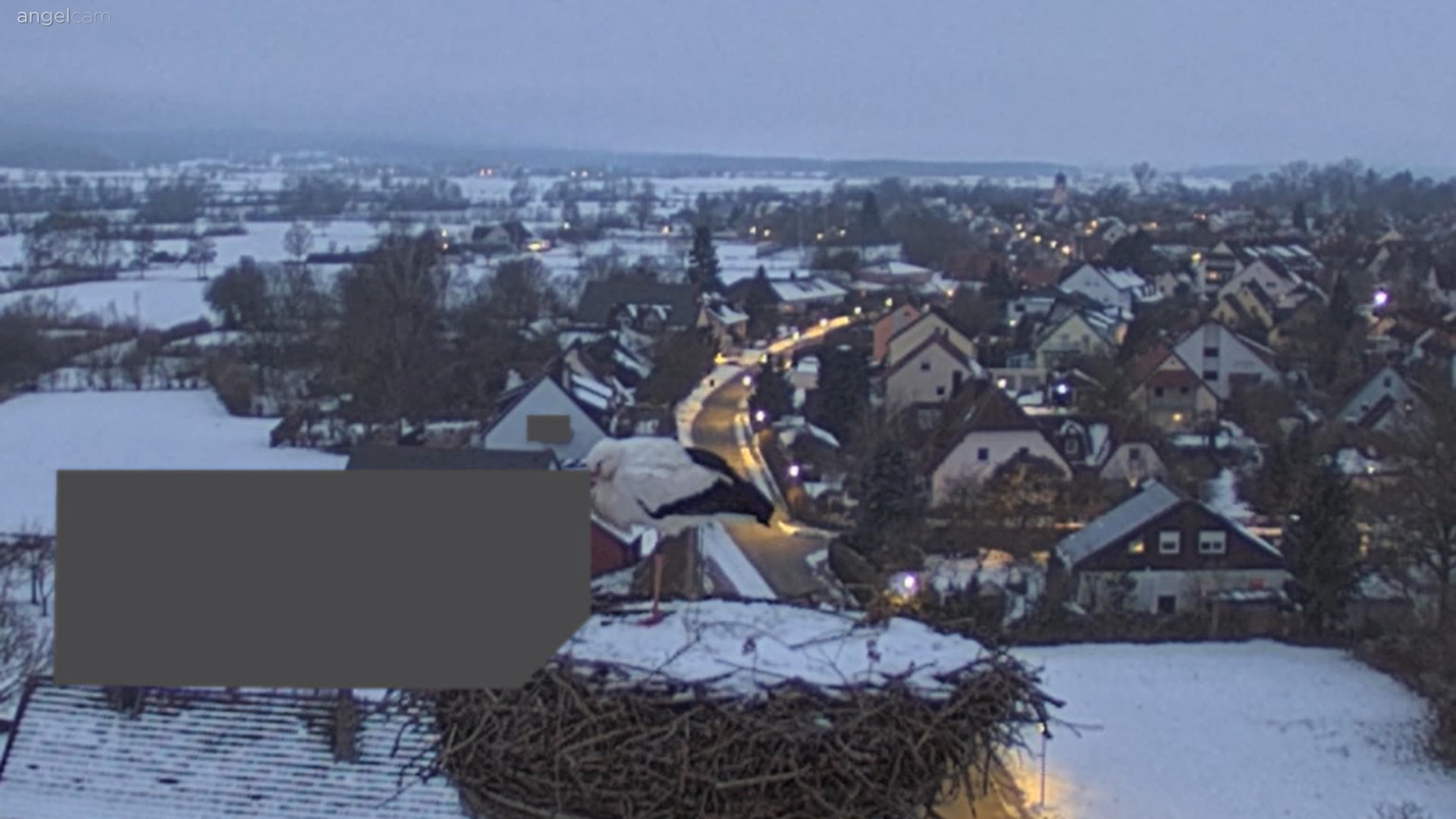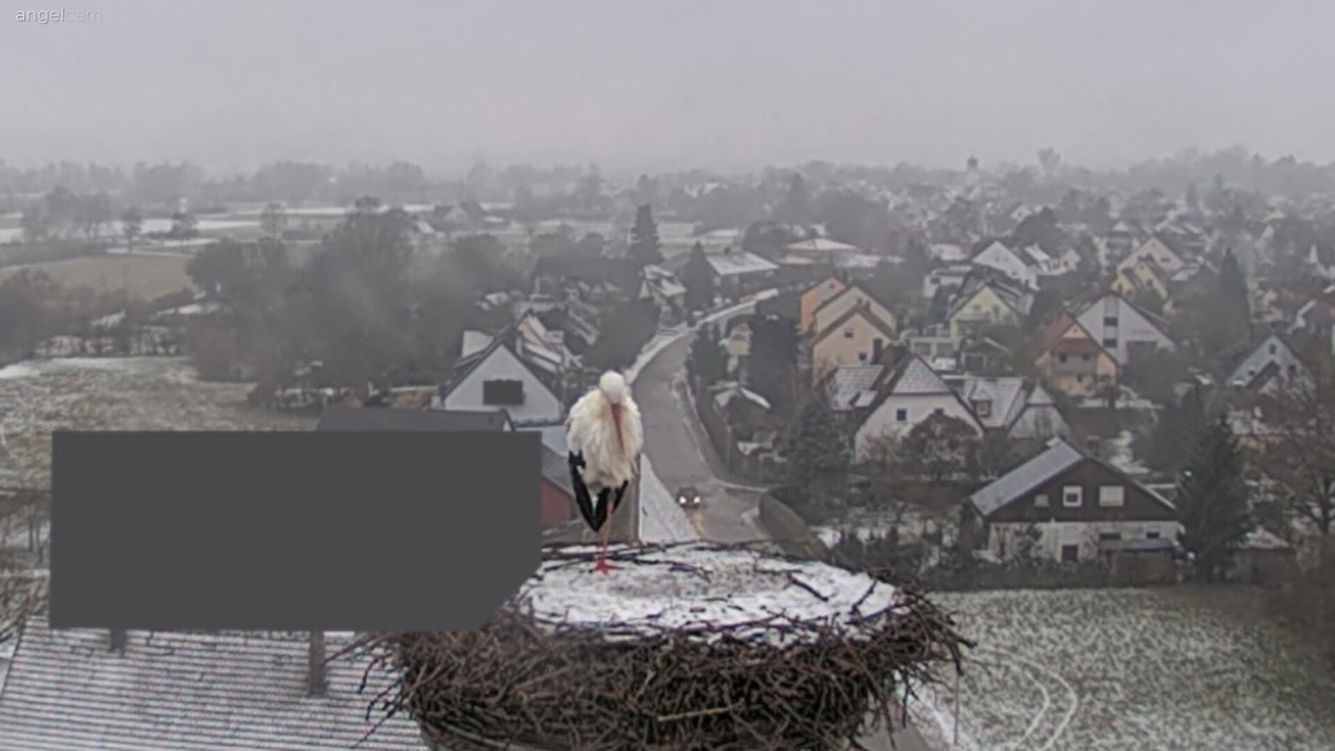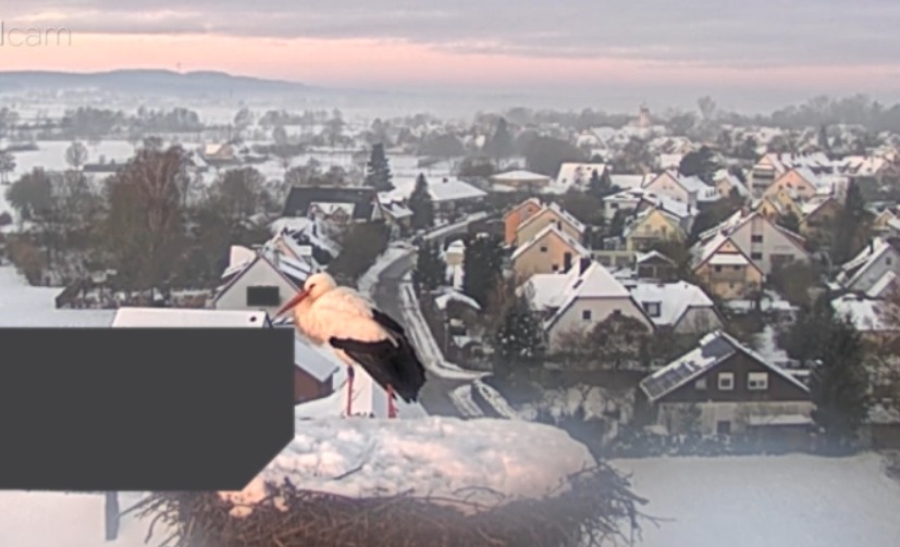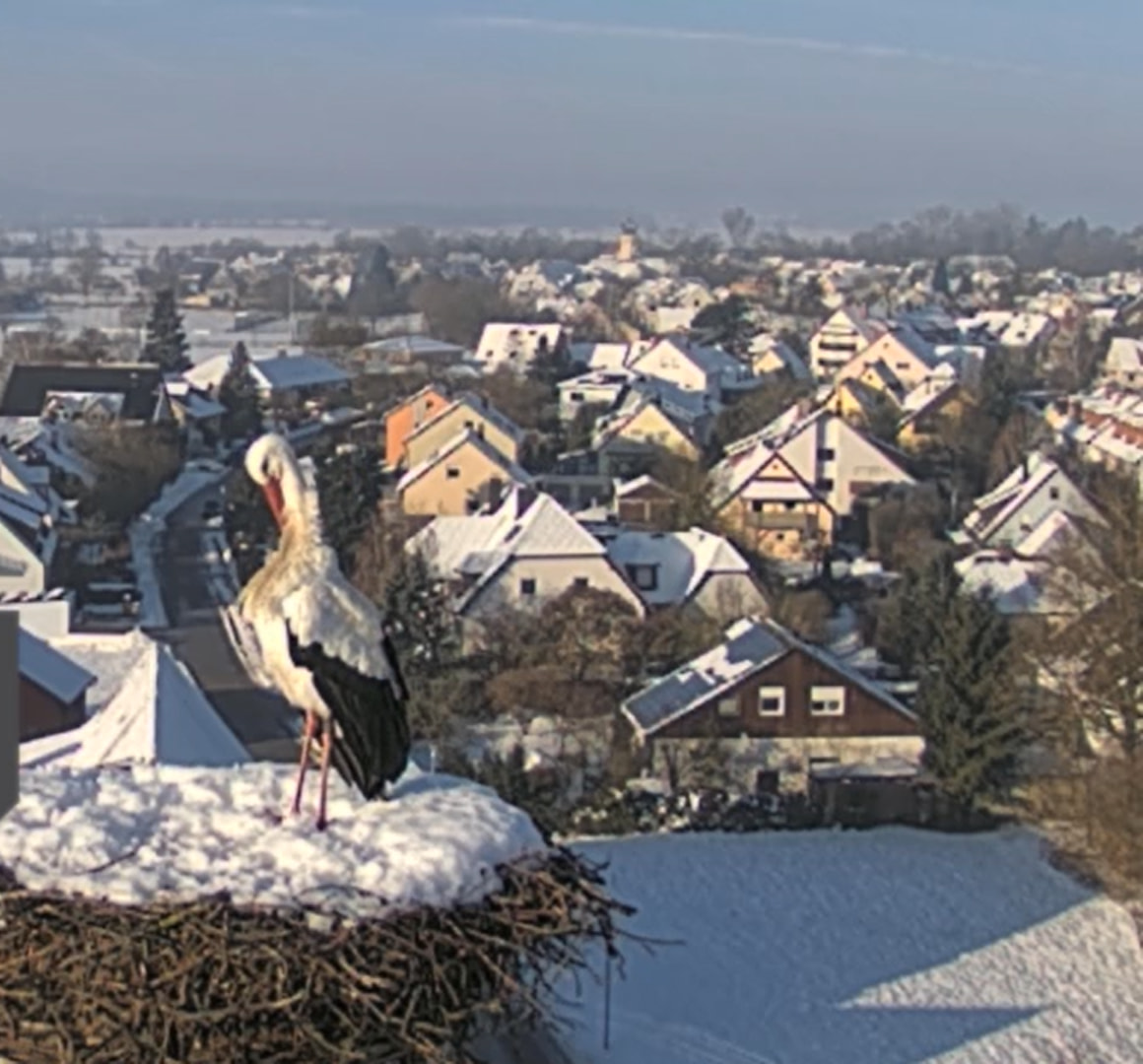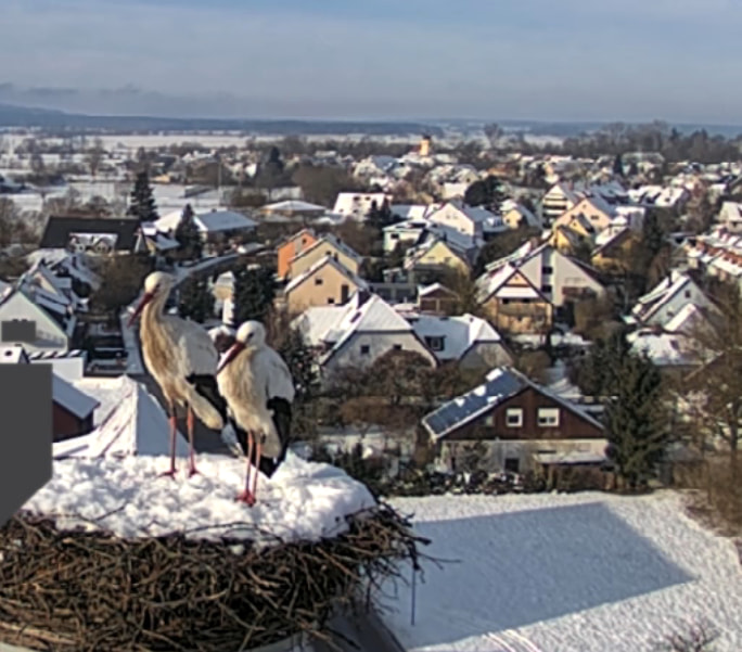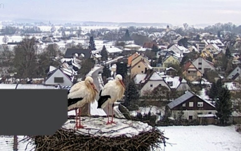 28.01.26, 17.25 Uhr: beide Störche sind im verschneiten Nest