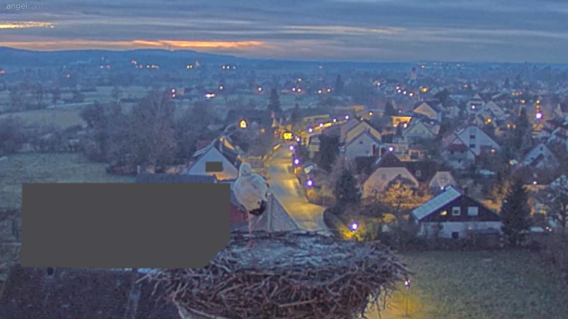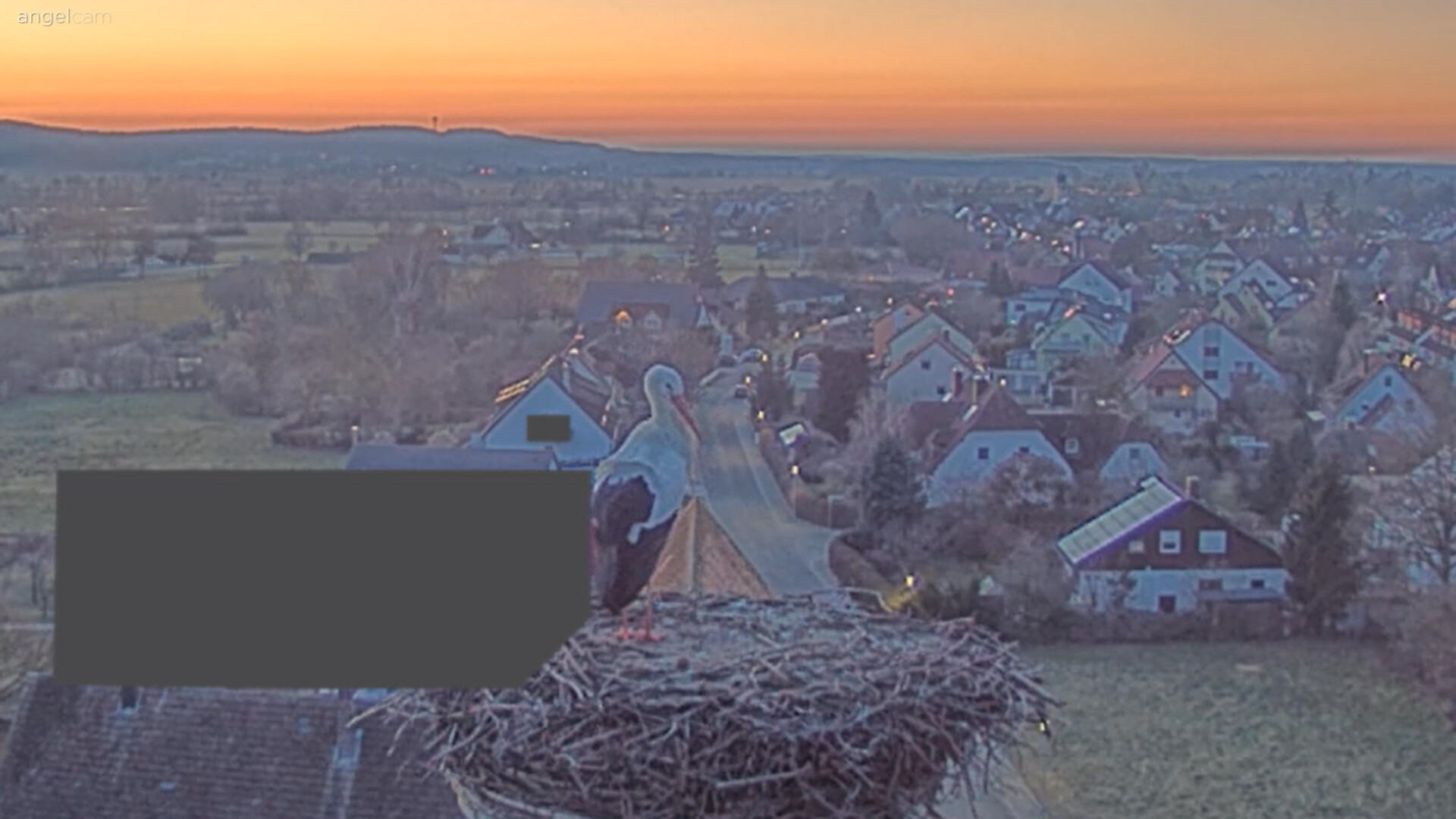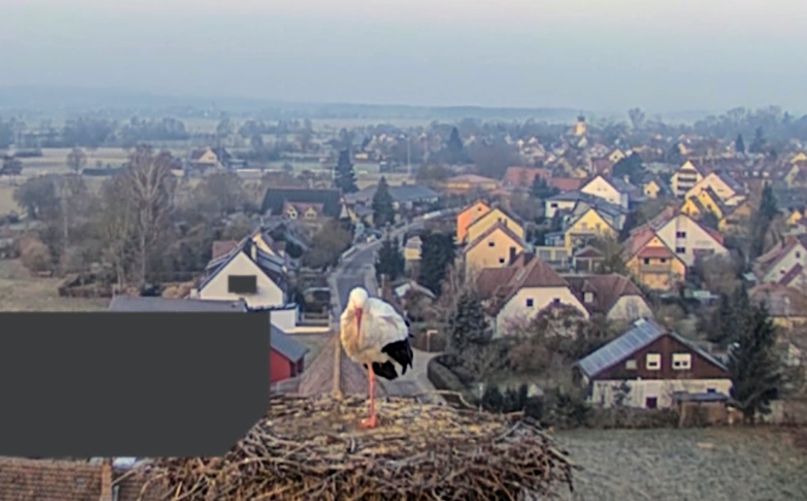Vorhin war kurz ein unberingter Fremdstorch im Nest, war leider zu langsam für einen Screenshot. Franzi kam sofort an und vertrieb den Storch. Ein paar Sekunden später landete dann auch Jakob. Sie blieben für ca. 20 Min. und flogen wieder ab.