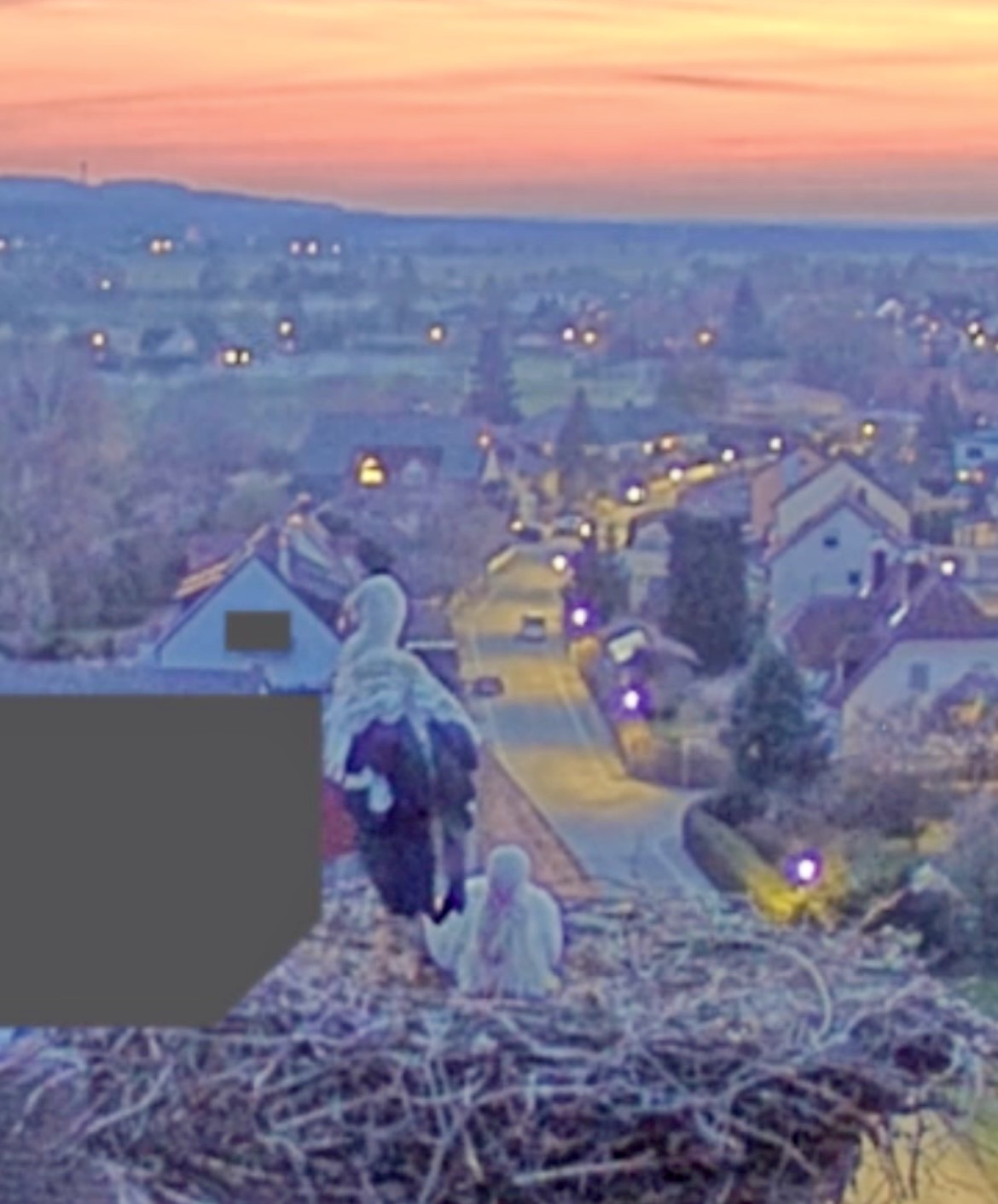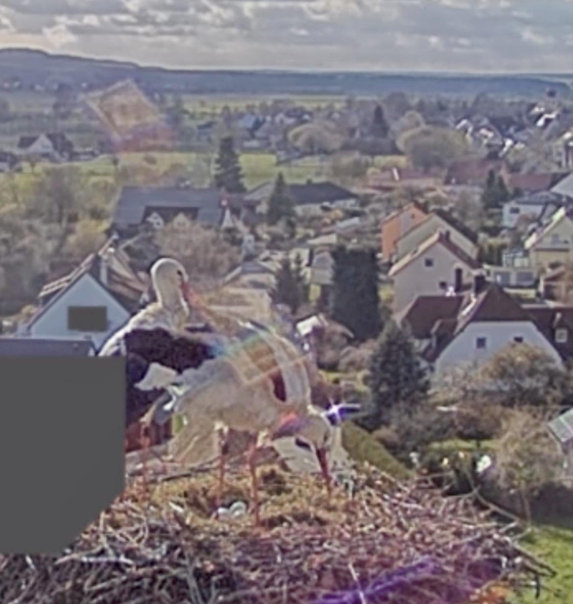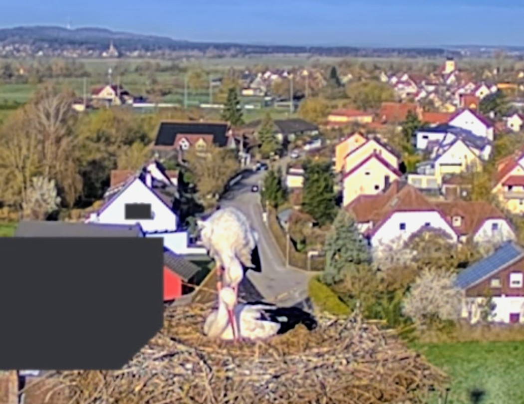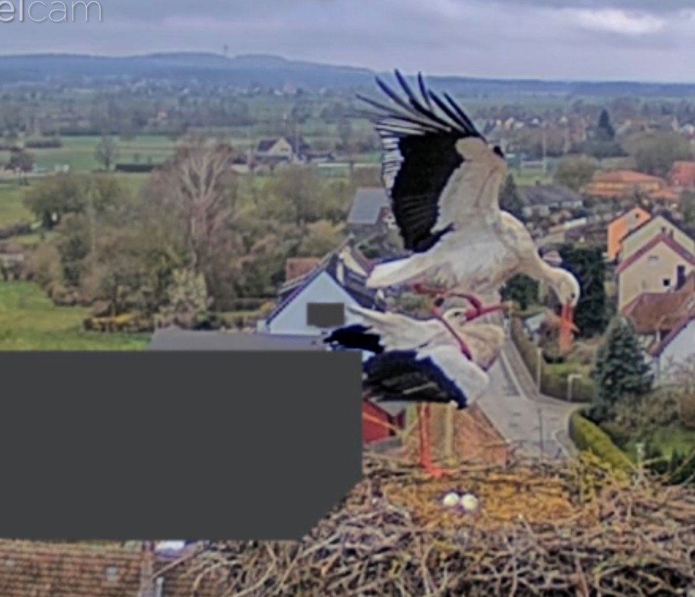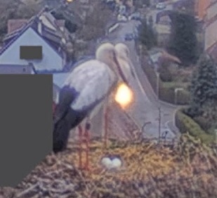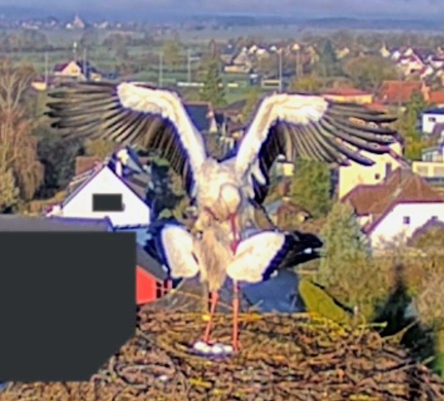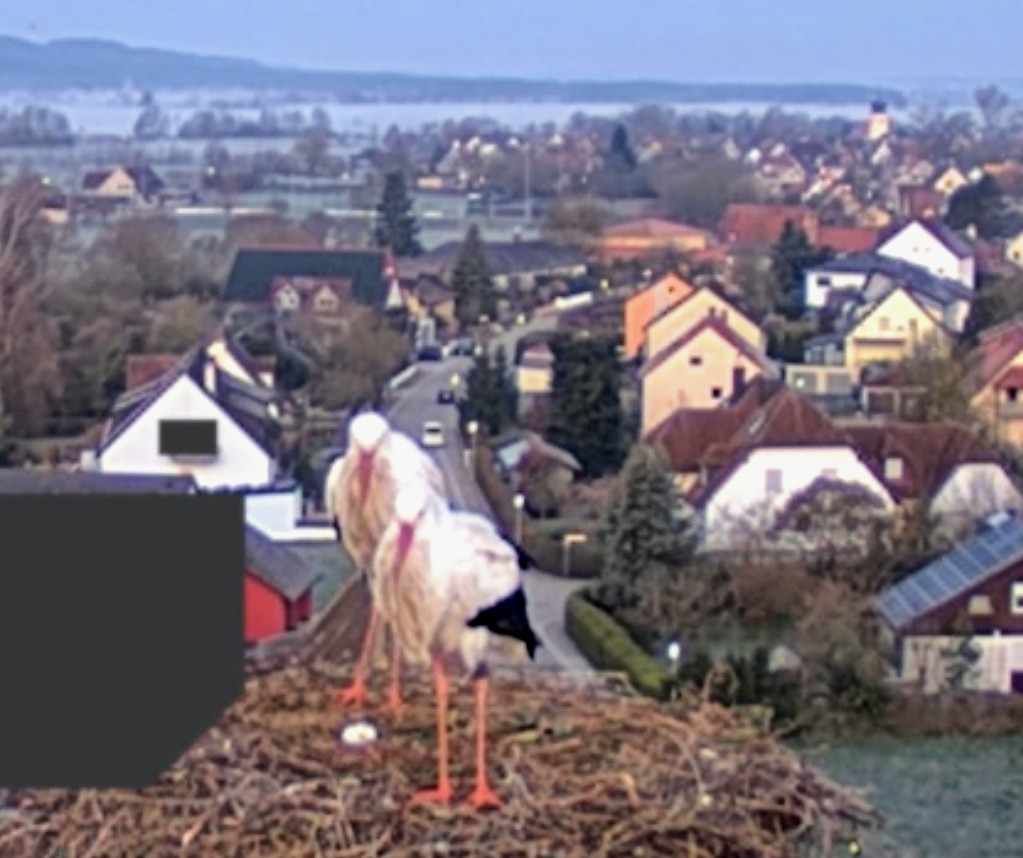 . Aber irgendwas schien nicht in Ordnung zu sein, vielleicht ist eines der Eier zerbrochen. Zunächst standen beide einige Zeit daneben, dann flog Franzi weg. Jakob beschäftigt sich seitdem intensiv mit der Reinigung des Nestes, er wirft immer wieder was raus. Er hat sich zwar mal hingesetzt, stand aber gleich wieder auf.