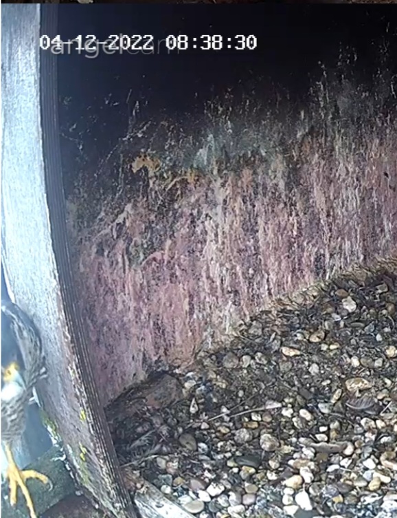 Um 18:20 kam ein adultes Tier angeflogen, da ist er schnell wieder rein und hat den Besucher ohne Beute als Mitbringsel nicht reingelassen.