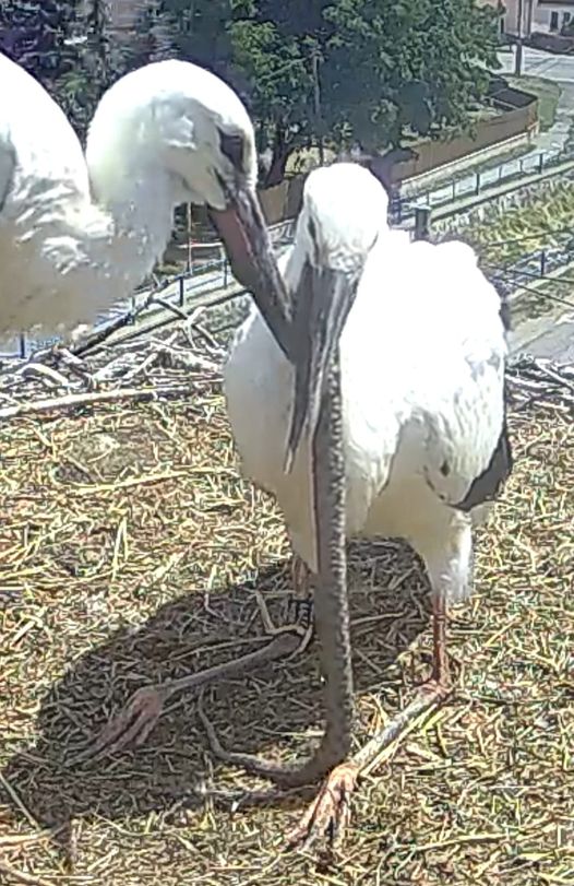 Heute war lange nur ein Jungstorch im Nest. Hab schon überlegt, ob das nicht evtl. der Besucher war, der so gerne Familienanschluss hätte.