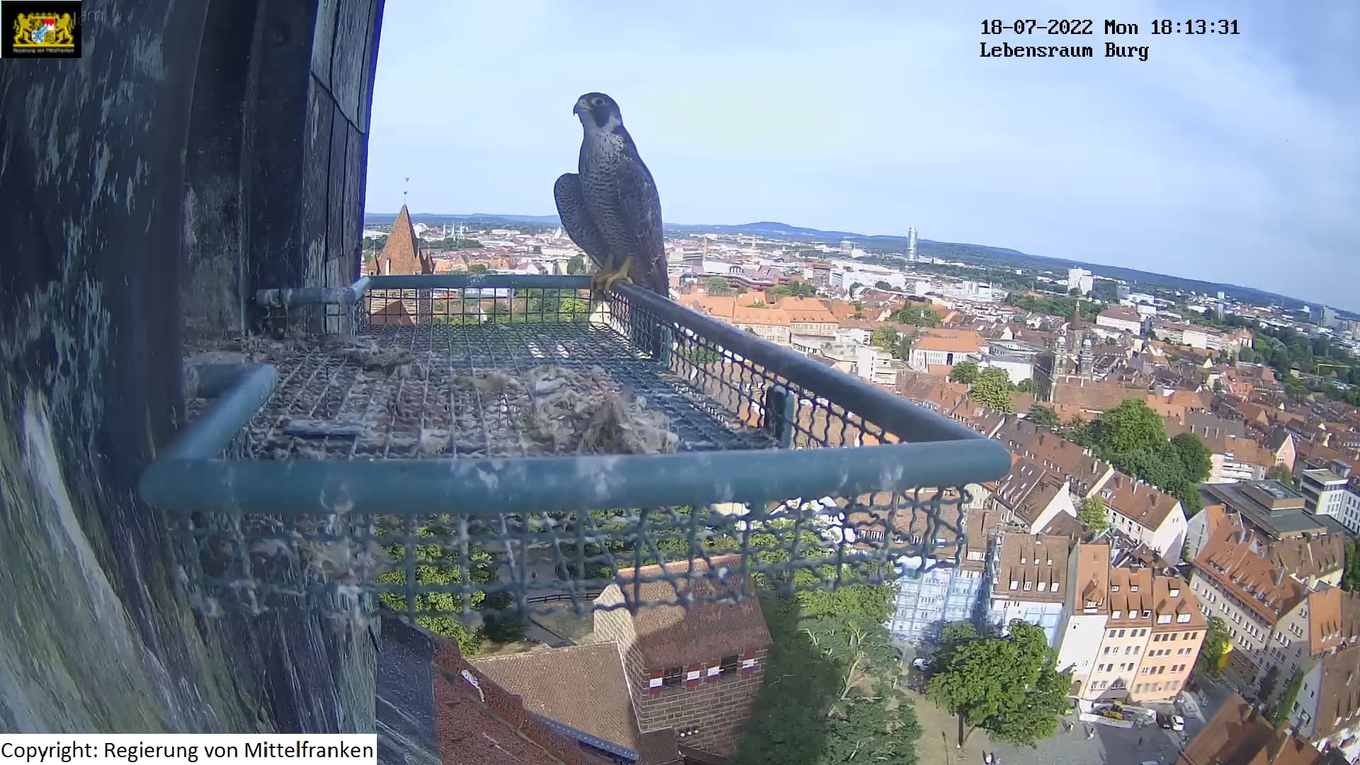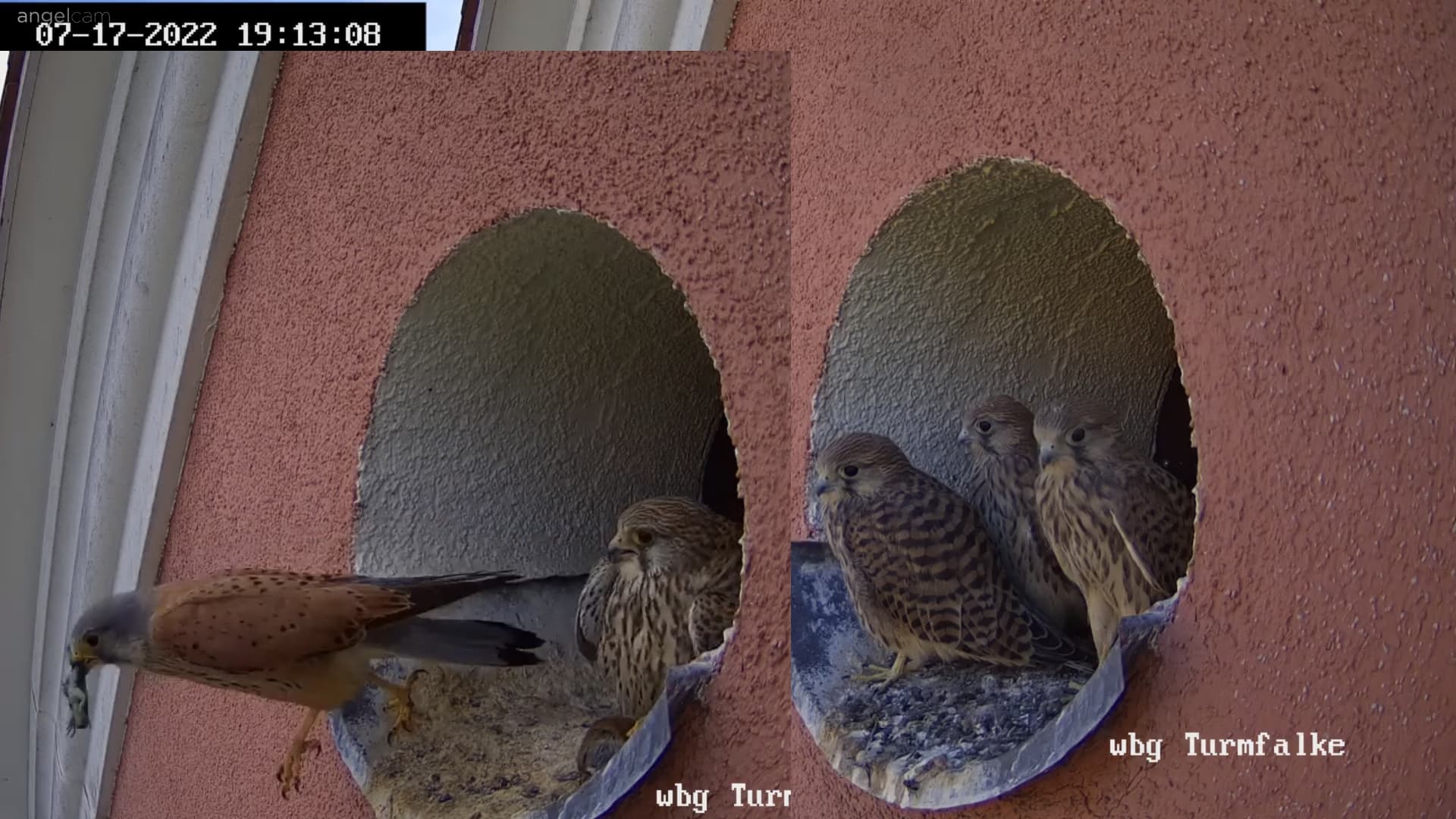 Die drei jungen Turmfalken in Mögeldorf sind fast flügge.