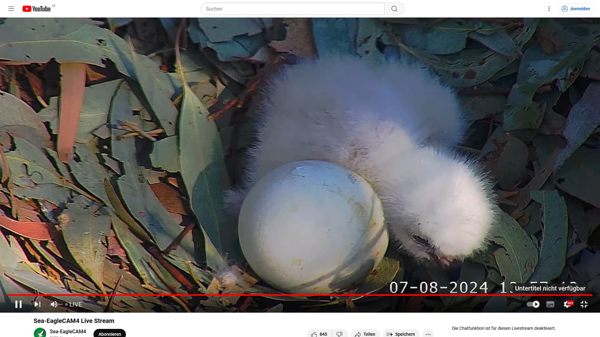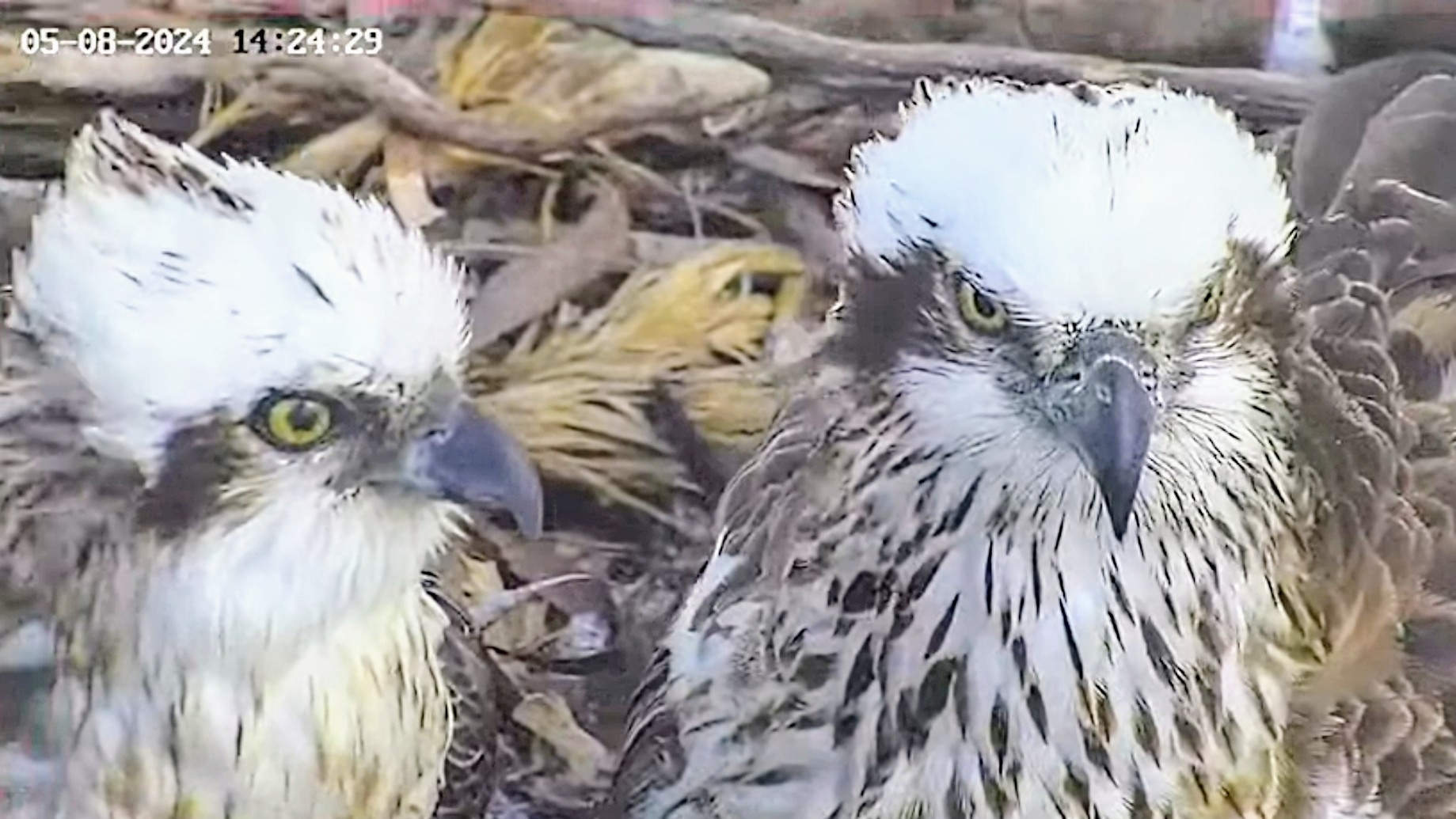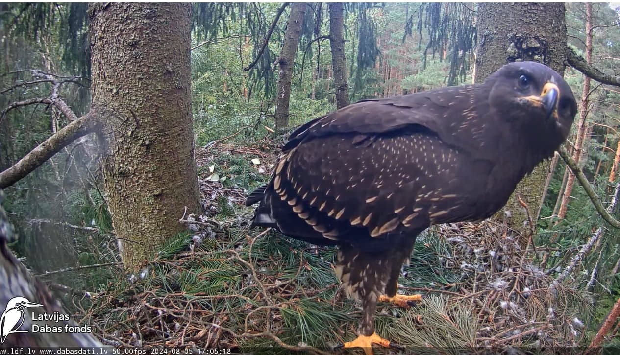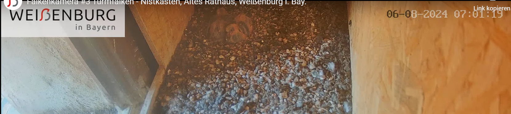 TFT wiegt bei einem Alter von 188 Tagen 8,8kg (vorher 10,5 kg). Normalerweise haben die Küken in dem Alter ihr Höchstgewicht erreicht, da sie in einem Monat ausfliegen werden. TF und TFT haben sich nun weit voneinander entfernt, die Cam kann nicht mehr beide erfassen. Am Freitag findet die Edelstahlbandierung statt, bereits im Juli haben die Männchen schwarze und die Weibchen gelbe Darvic-Bänder bekommen.