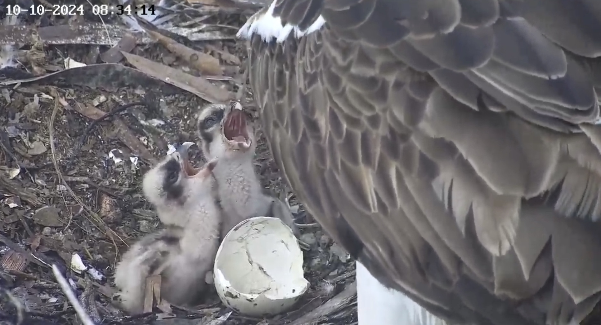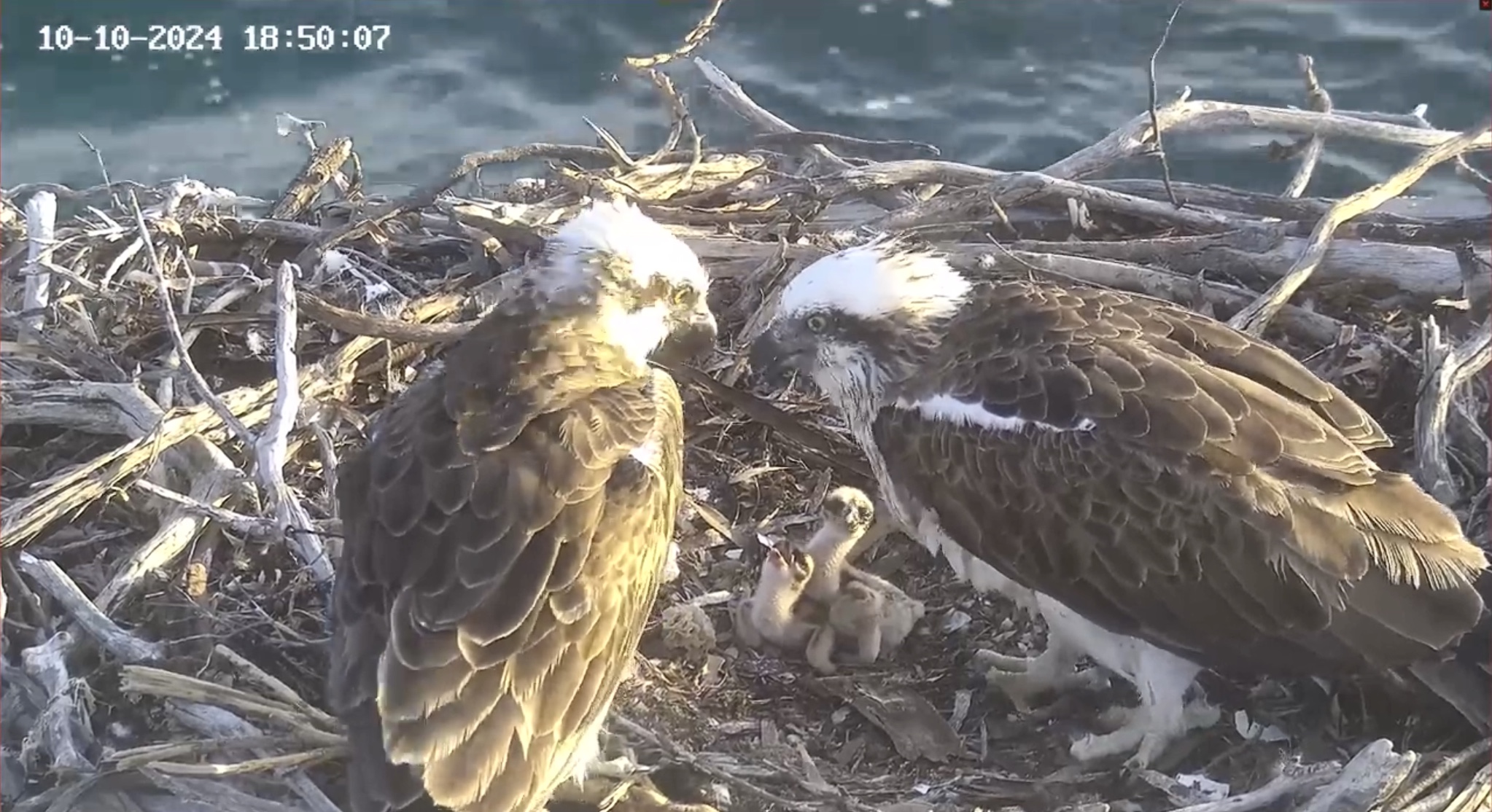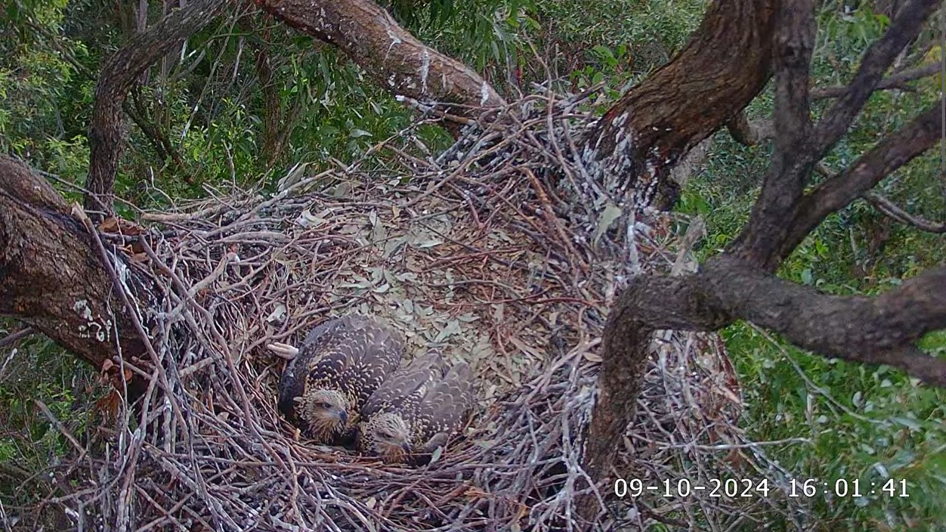 Bei den jungen Weißbauchseeadlern konnte man am 10.10. morgens sehen, wie sich SE 33 eine gebrachte Beute schnappte und allein fraß. Tagsüber gab es dann noch mehrere Fütterungen für beide Jungvögel.