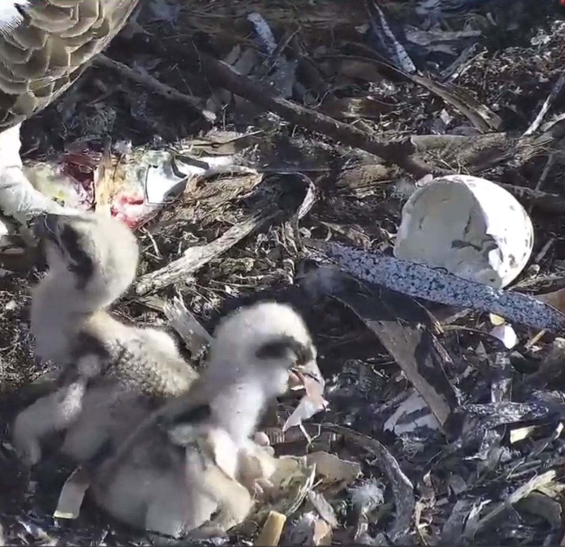 Ich finde gerade diese Situation besonders traurig. Erst hilft Mum dem Winzling aus dem Ei, was ich bisher noch in keinem Nest beobachtet habe und jetzt macht es auf mich den Anschein, als wolle sie nicht glauben, was geschehen ist.