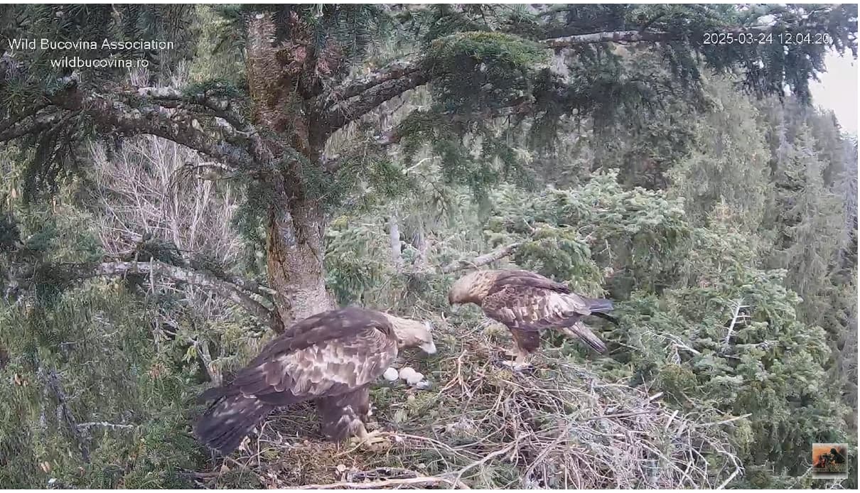 Im Steinadlernest in Bukovina/ Rumänien ist ein neues Weibchen namens Păușa eingezogen. Calimans langjährige Gefährtin Lucina wurde ja letztes Jahr tot aufgefunden, nachdem ihr einziges Küken GsD schon flügge war. Eine Autopsie hatte ergeben, dass sie vergiftet worden war.