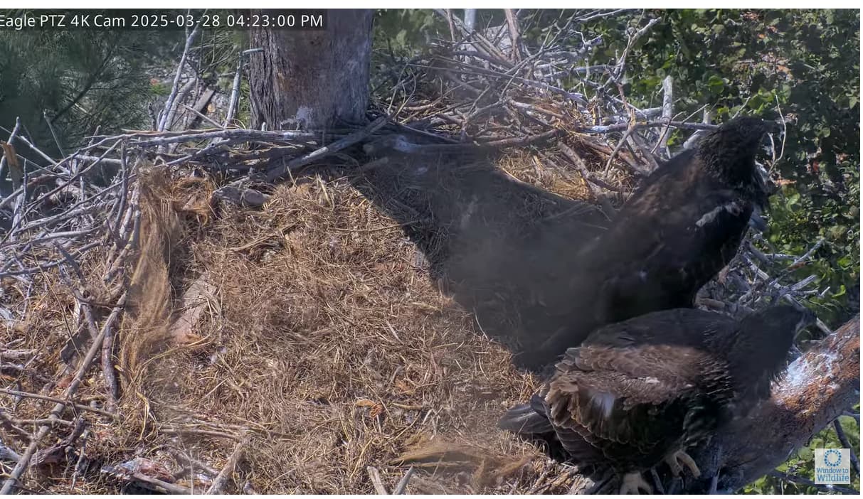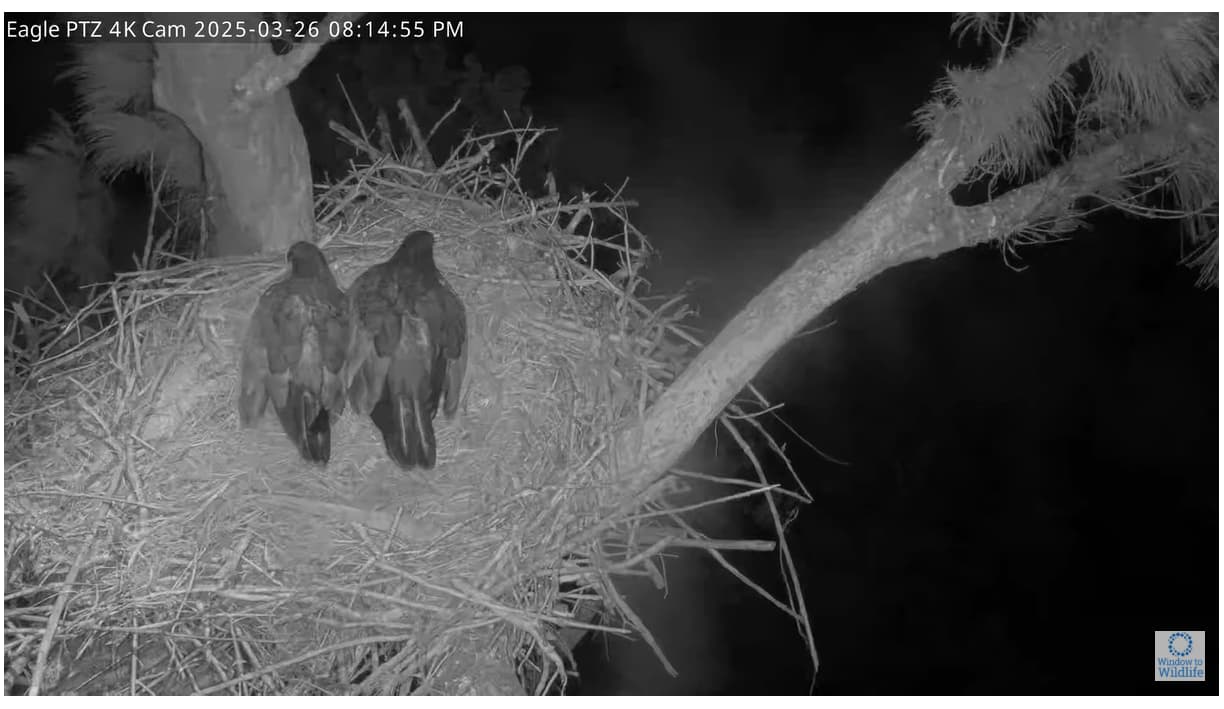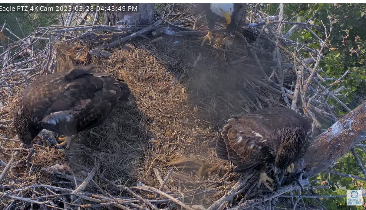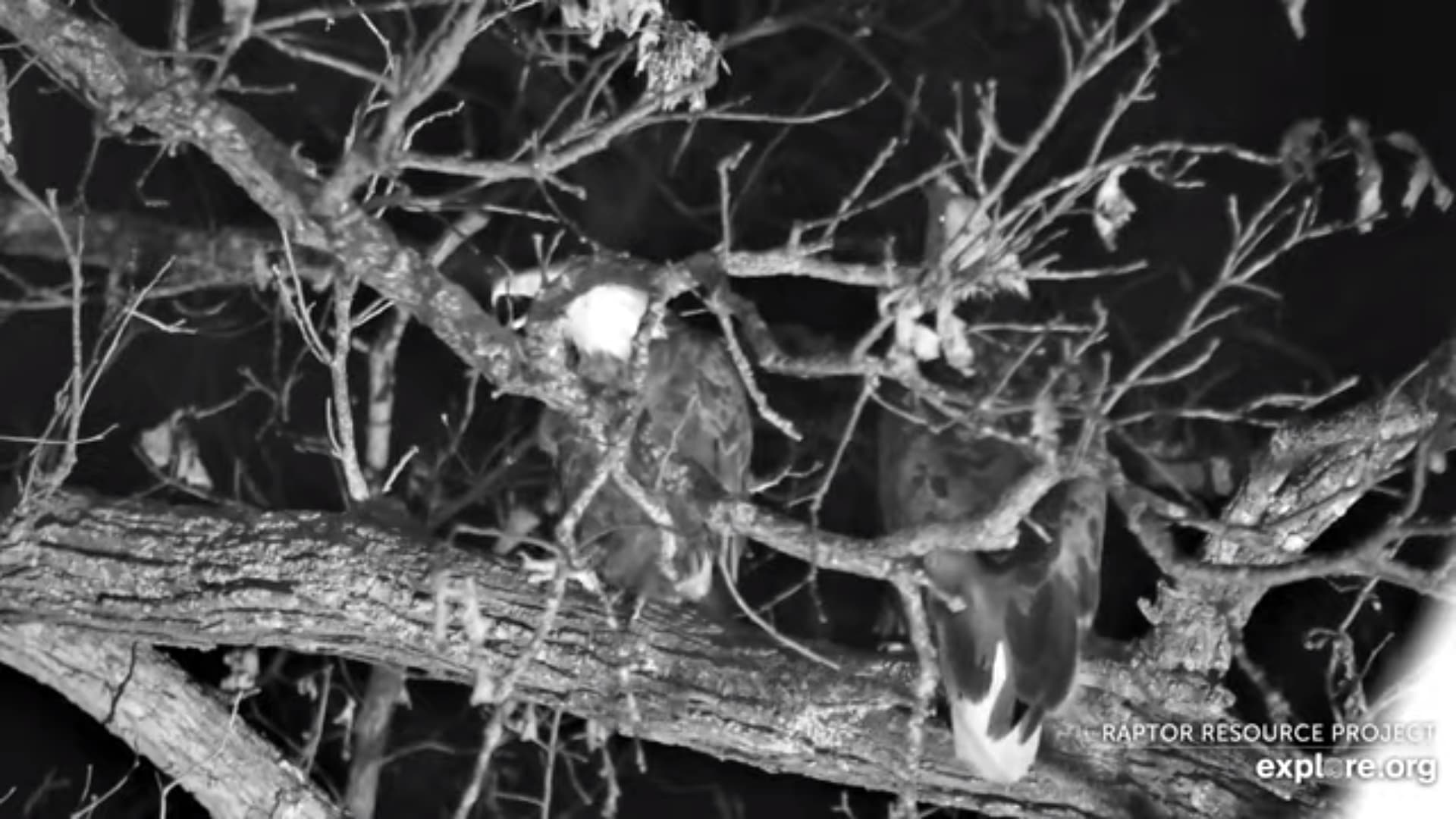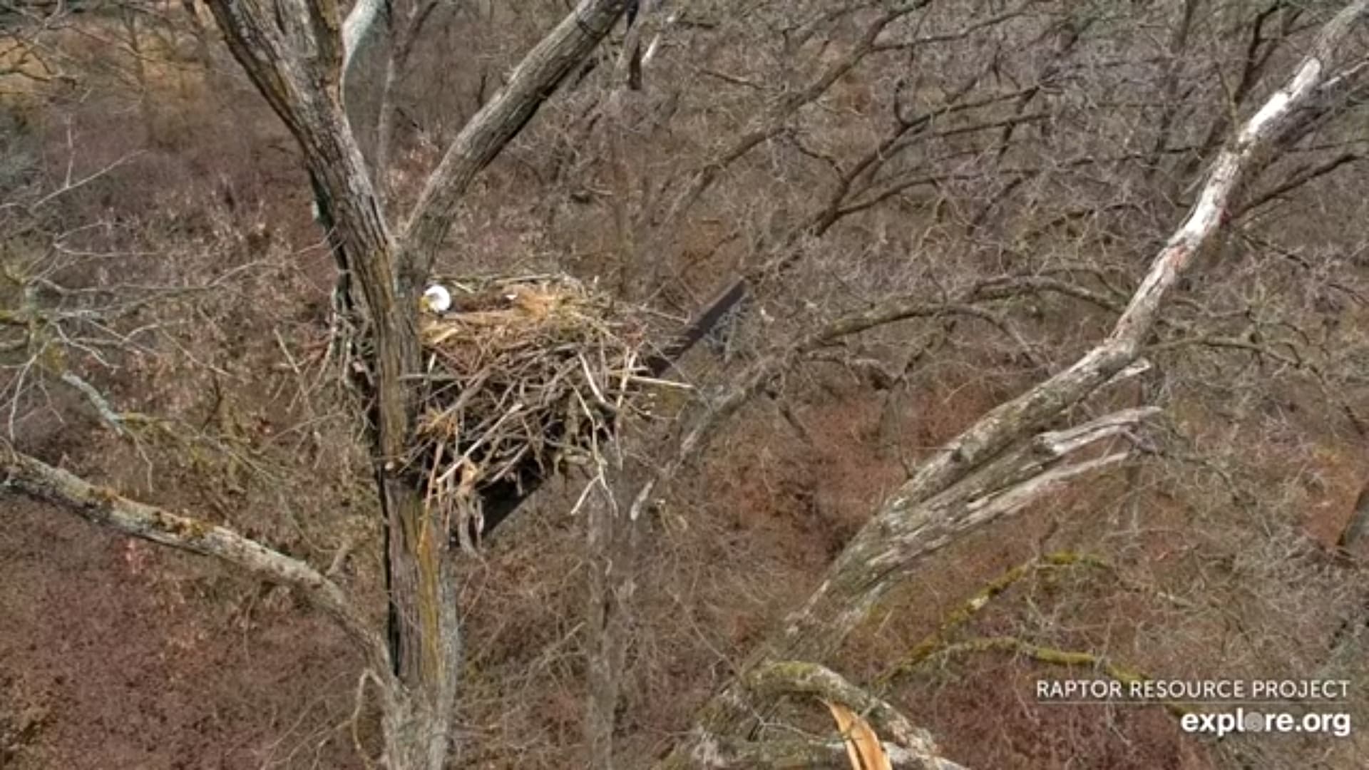 Die Decorah North Eagles sind bei der Brutaufgabe. Das verbliebene Ei haben sie in der vorigen Nacht acht Stunden unbebrütet gelassen und in ihrem Schlafbaum geruht.