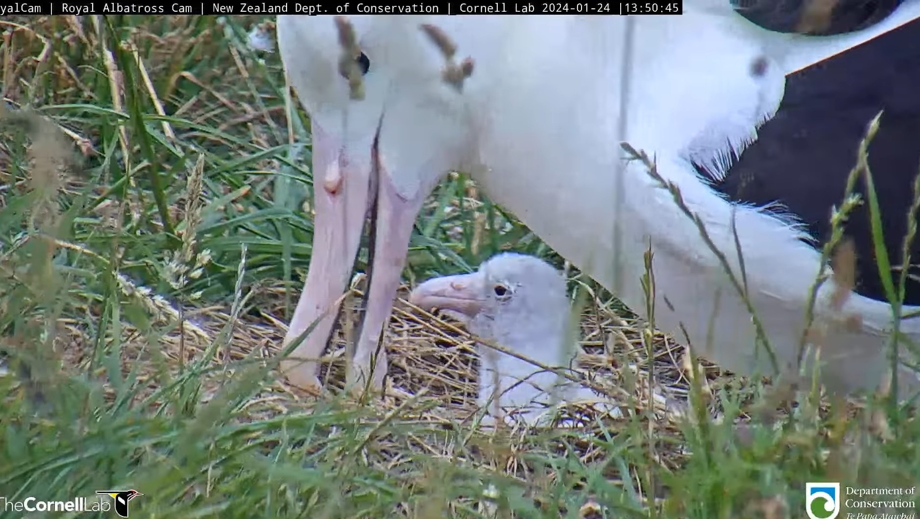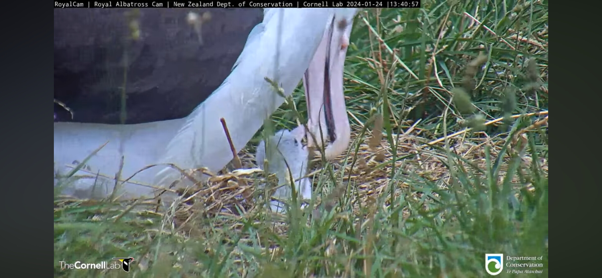 Das Küken wurde heute von den Rangern zweimal gewogen, ein Check-up durchgeführt und das Nest besprüht. Es hat nach dem Schlupf etwas abgenommen, das ist normal berichtet Ranger Sharyn Broni. Sie gibt das Kleine an Mama LGL zurück, die sich danach mit einem Klack-klack von ihr verabschiedet.