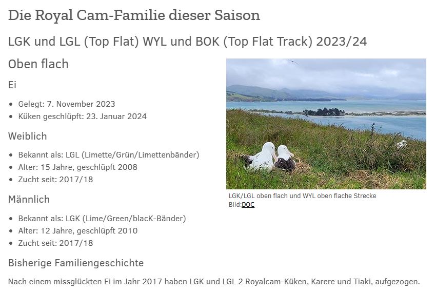 LGL und LGK haben zusammen zwei Küken großgezogen, Karere und Tiaki.