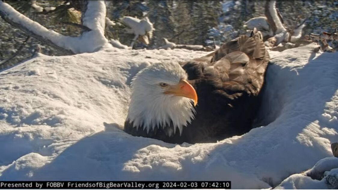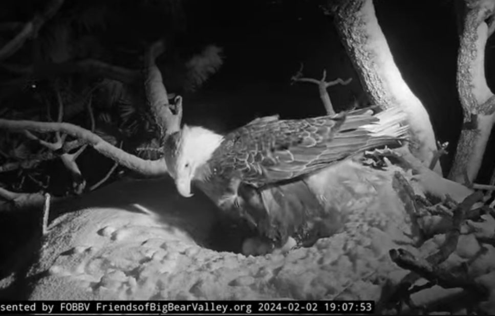 Shadow dreht sich und die drei Eier rum und brütet dann weiter: