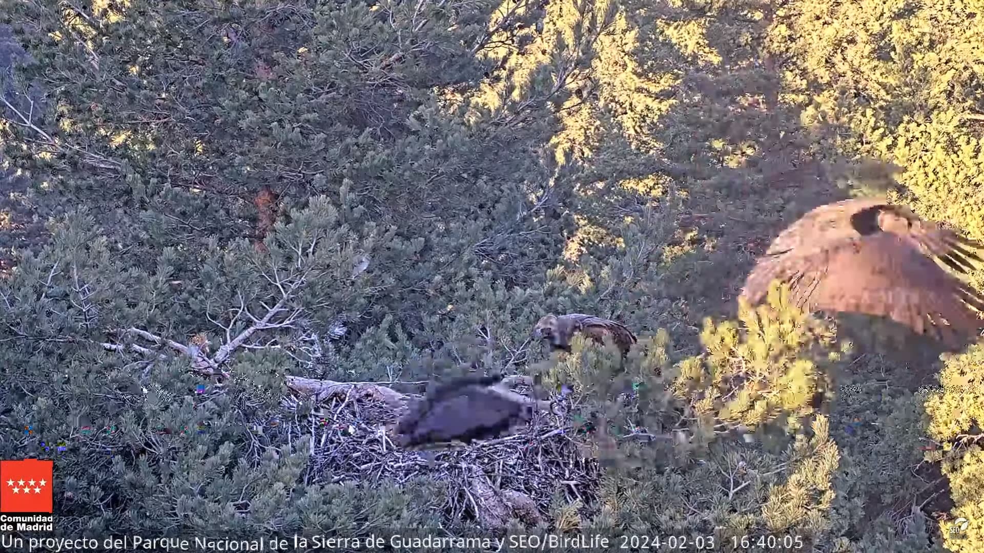Der Kollege da hat aber offensichtlich keine Lust im Winter auf Erkundungsreisen zu gehen, bleibt am Horst hocken und fordert Fütterungen ein.