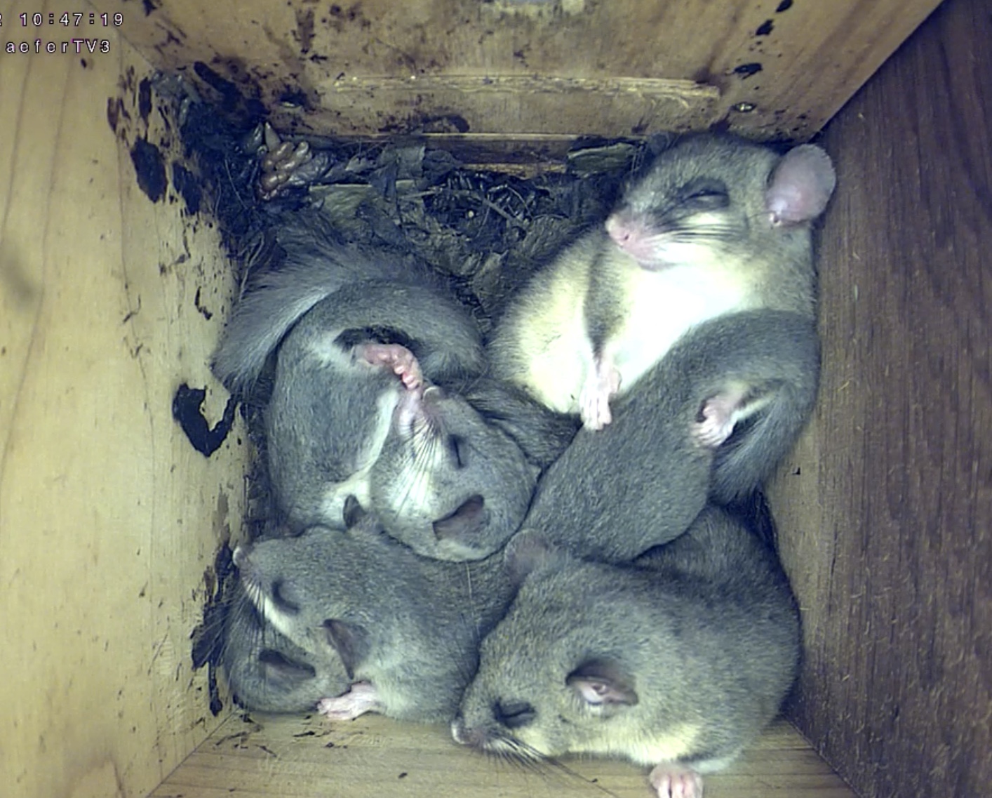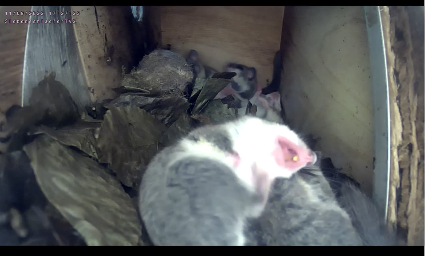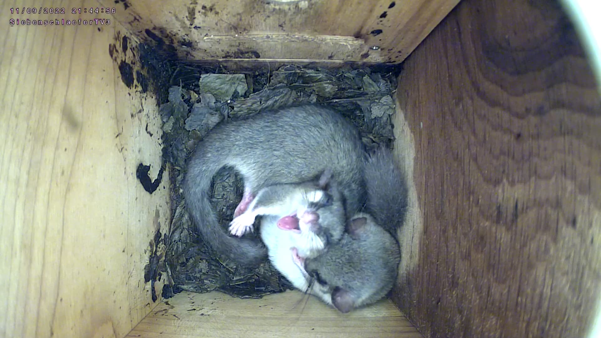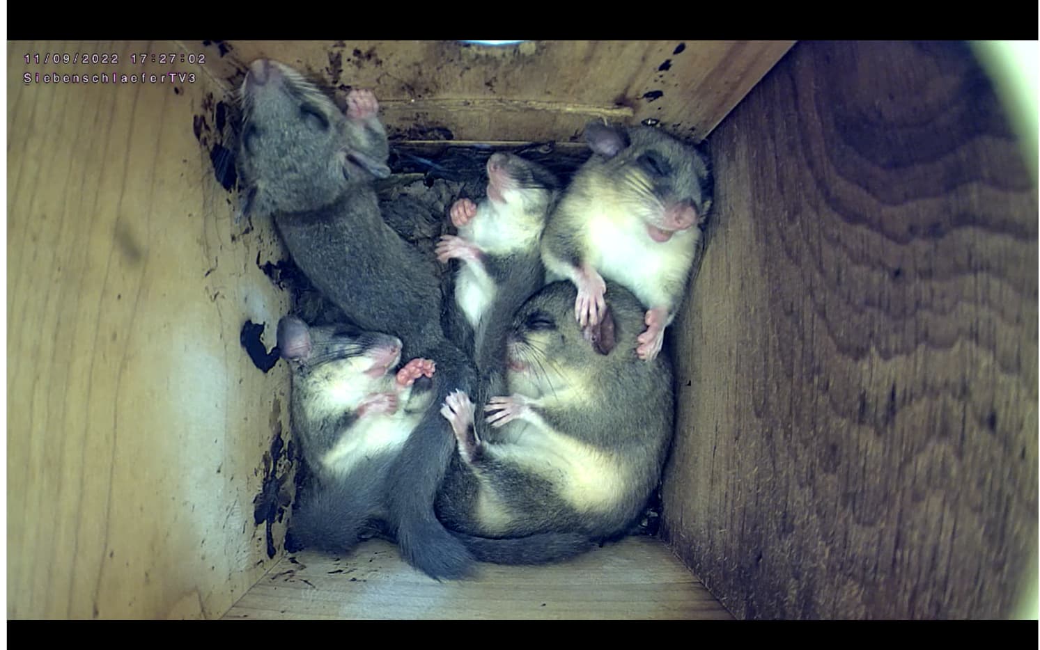 Cam2 : alles kratzt sich - vielleicht sind die Siebenschläfer so wuselige Tierchen, da sie vom ständigen Juckreiz ganz nervös sind. Flöhe sind nochmal gut für was