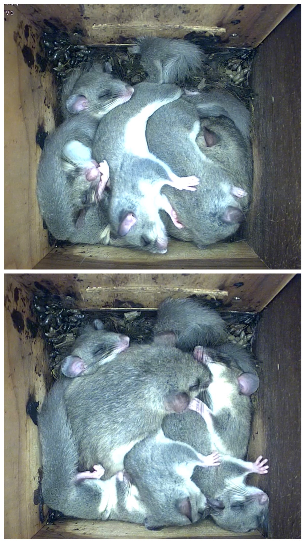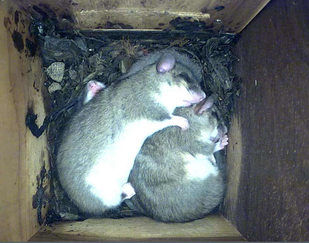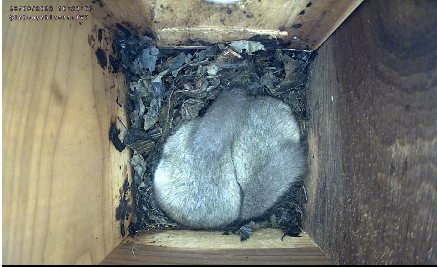 Die Siebenschläfercam läuft noch und es wird gemümmelt und eifrig Fellpflege betrieben