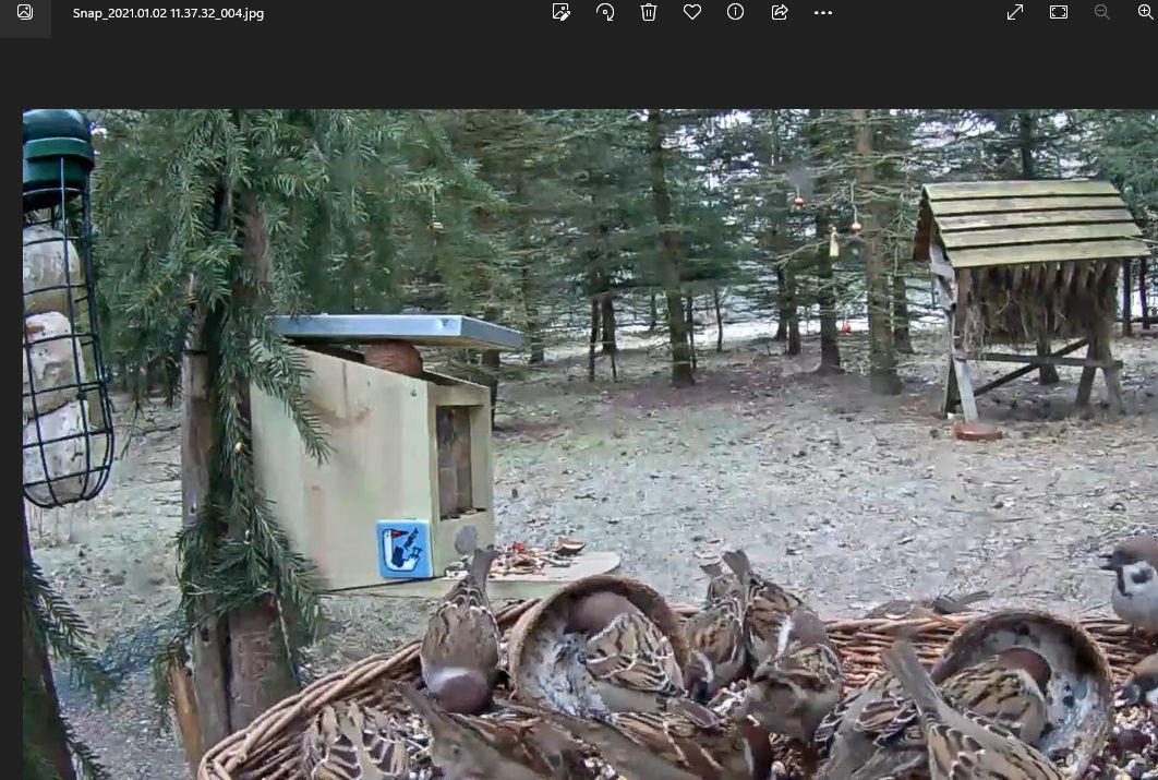 Ich schätze, dass außerhalb des Blickfelds im Kasten noch Walnüsse/Nüsse liegen, habs öfters beobachtet, dass die aufgestapelt werden bis über den Rand hinaus beim Nachfüllen - hier noch eine alte Aufnahme aus dem Januar 2021 mit einem anderen Kasten