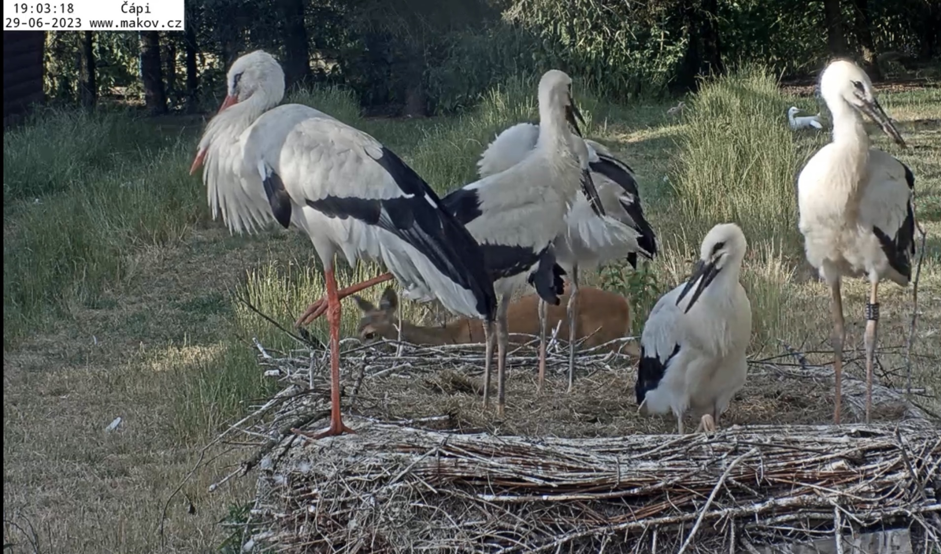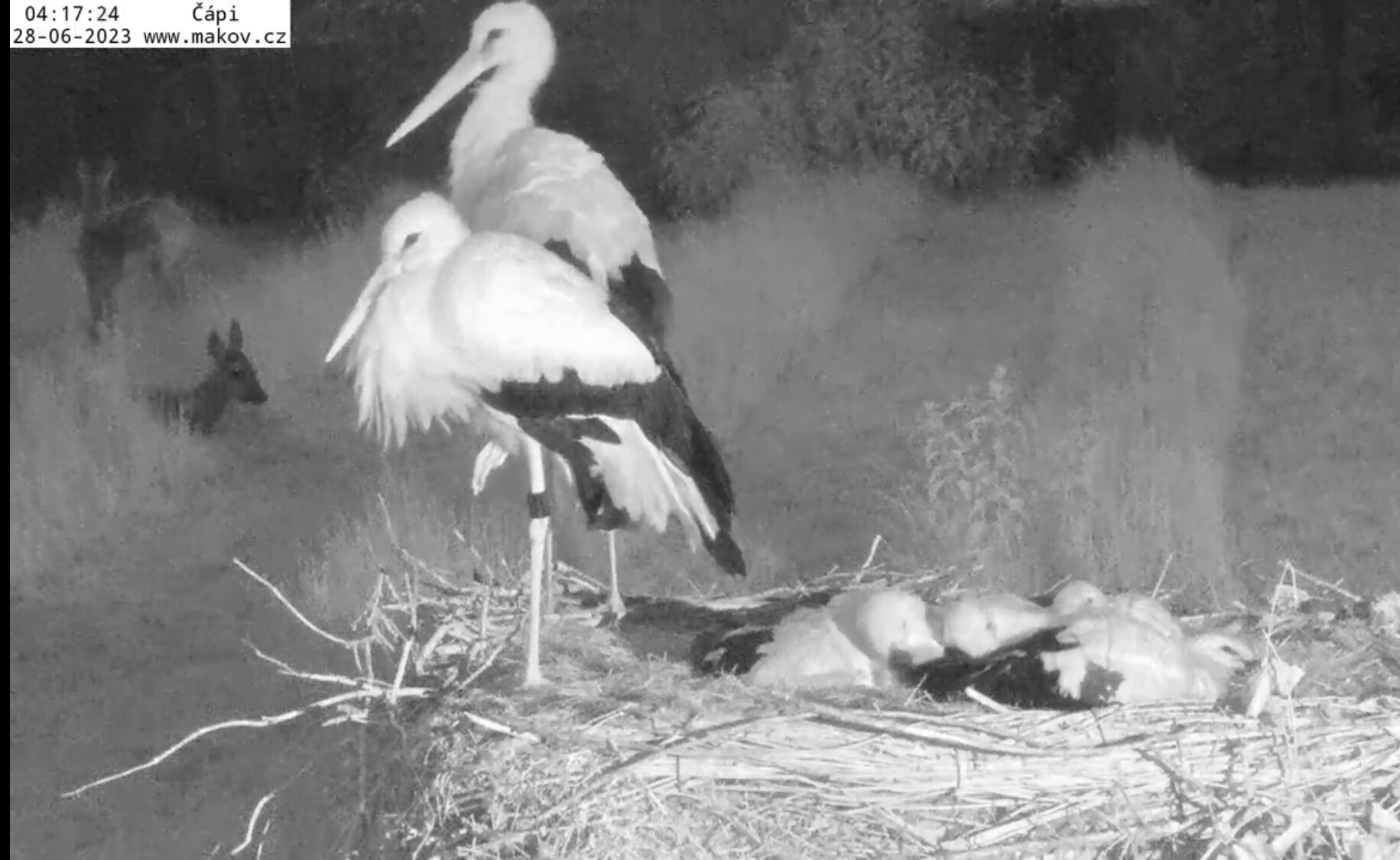 Fünf Störche, ein Reh ![]()