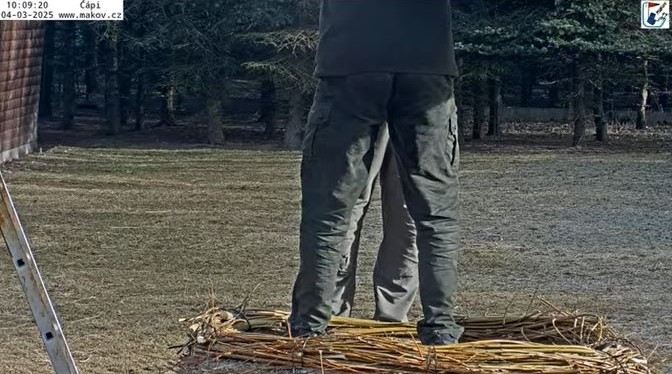 Herr Libor zeigt auf Insta, wie das Storchennest für die kommende Saison renoviert wird.
