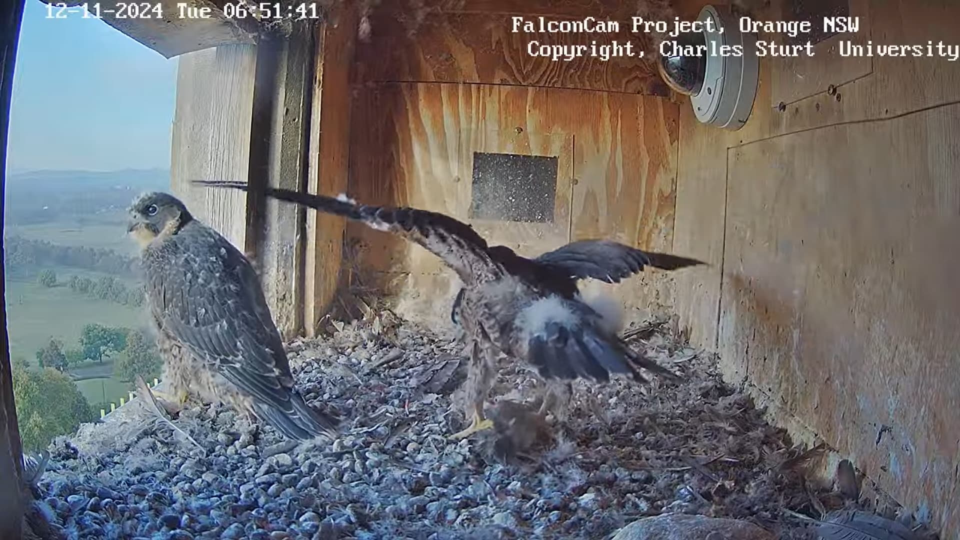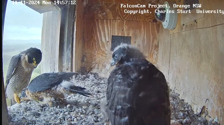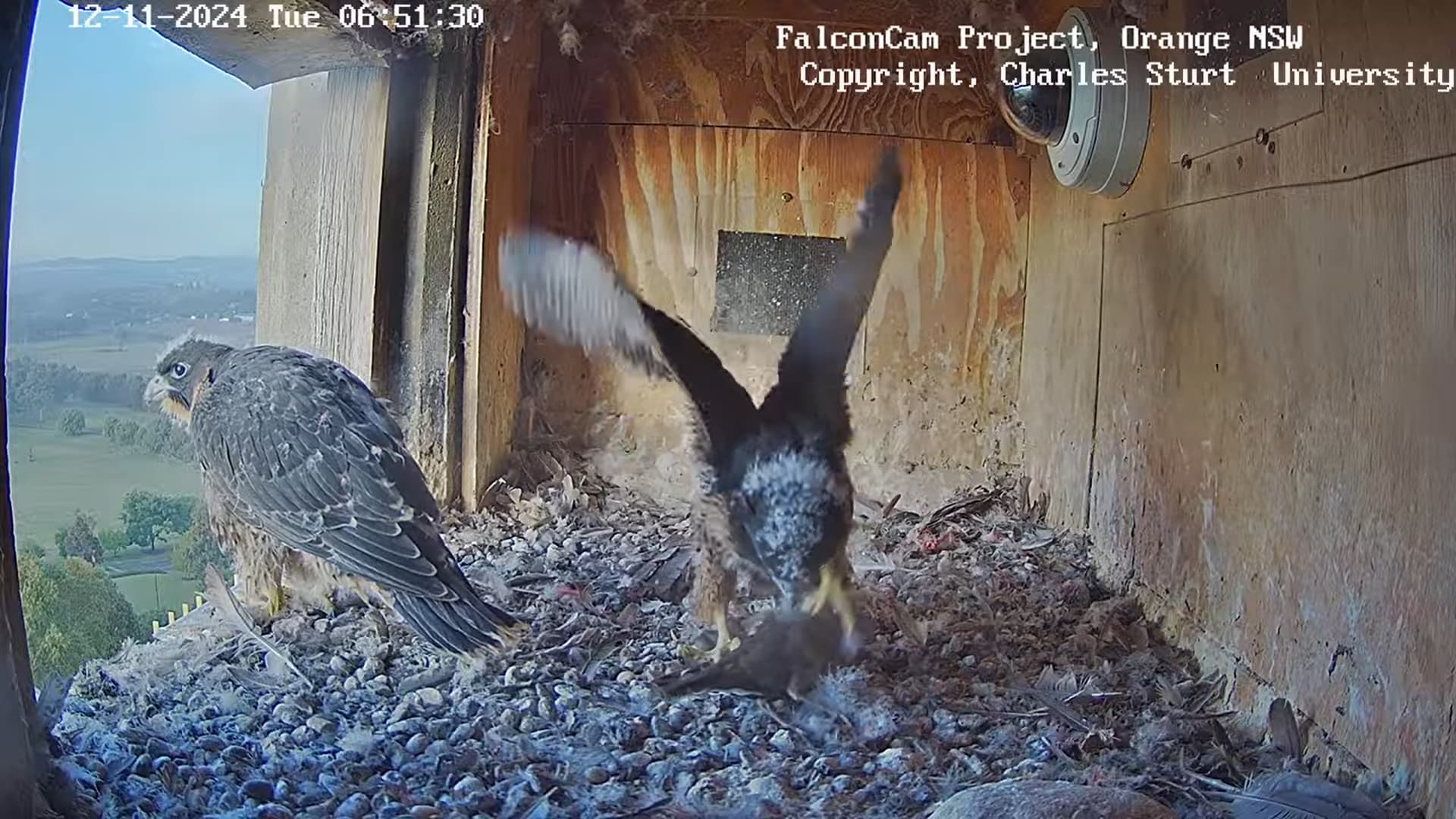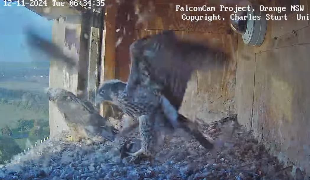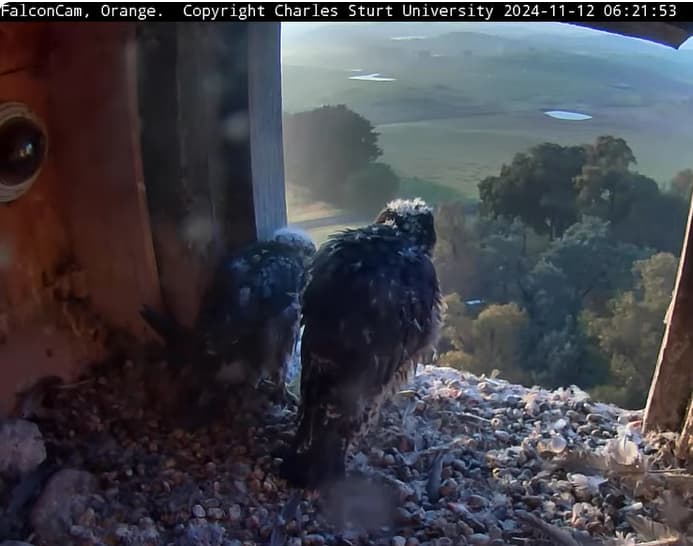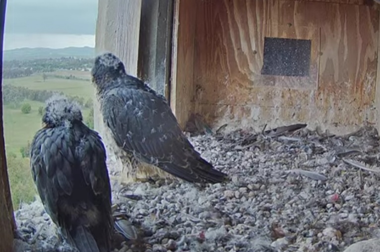 Was für ein Größenunterschied! Ich weiß nicht, ob es an der Kameraperspektive liegt, aber bei den hiesigen Jungfalken auf diversen Webcams ist mir das nie so aufgefallen. Vielleicht ist Yira auch eine besonders große Falkin und Garrama ein Terzelzwerg ![]()