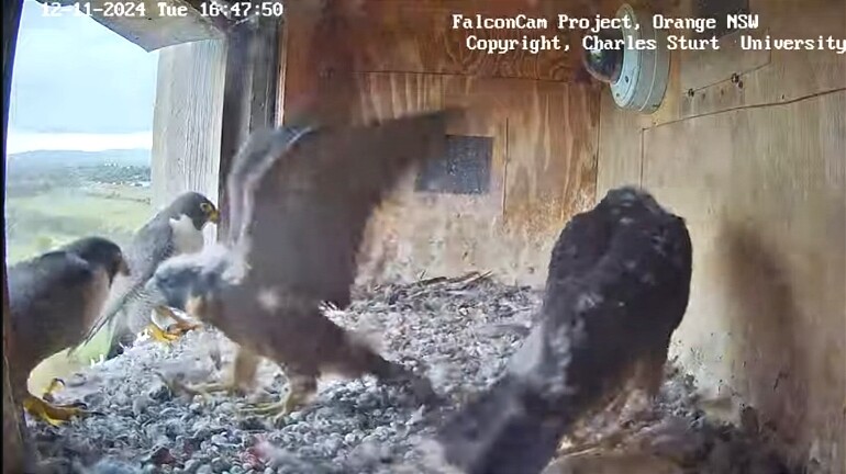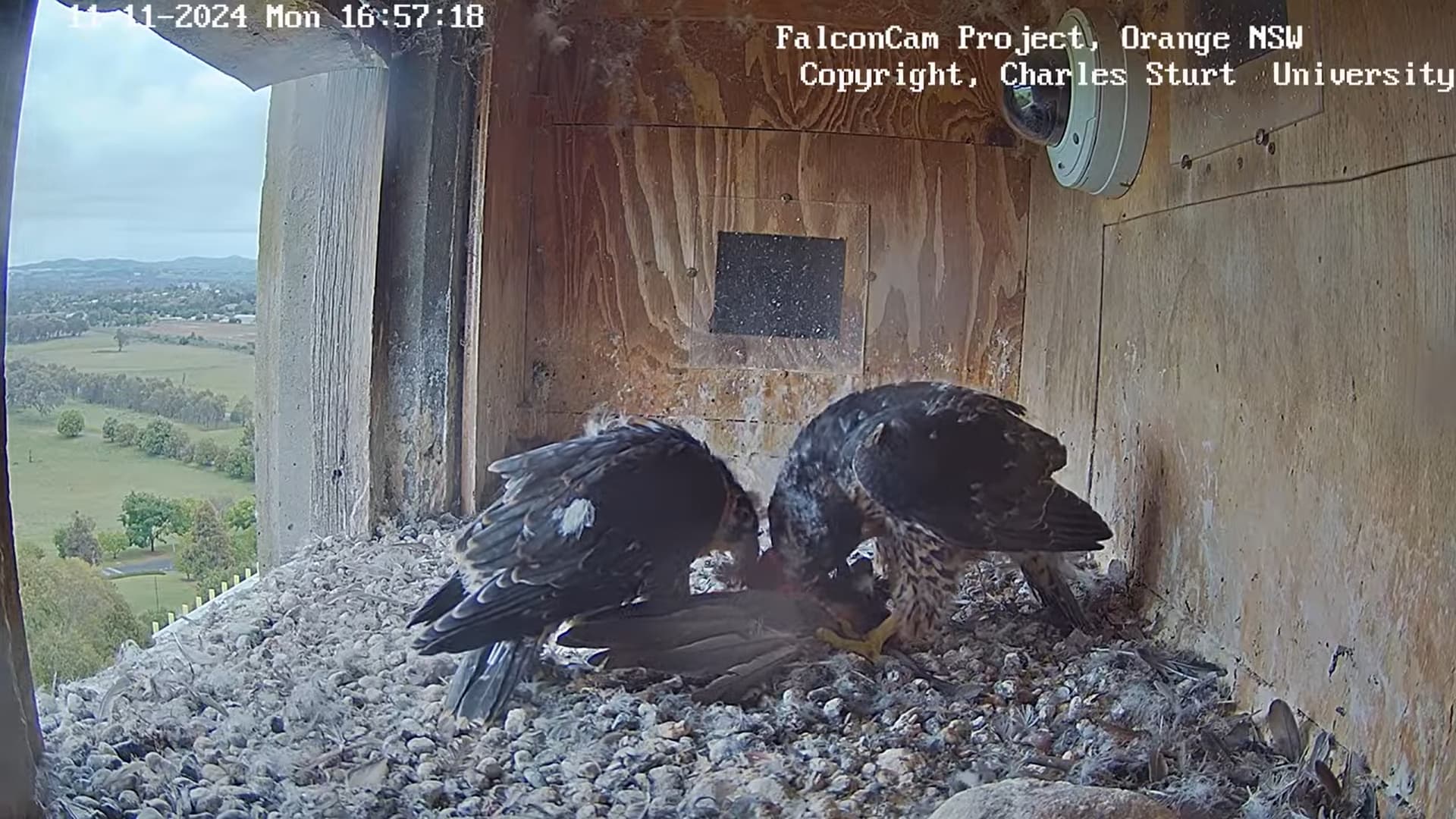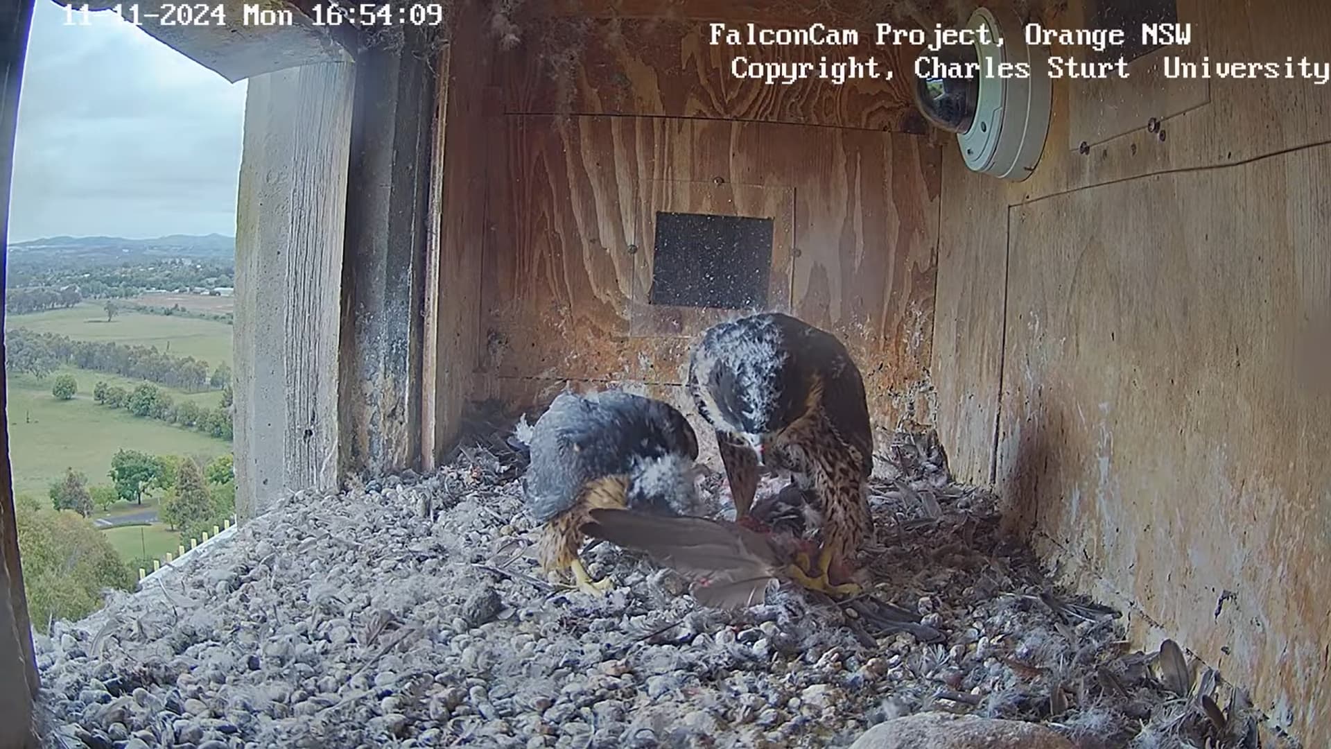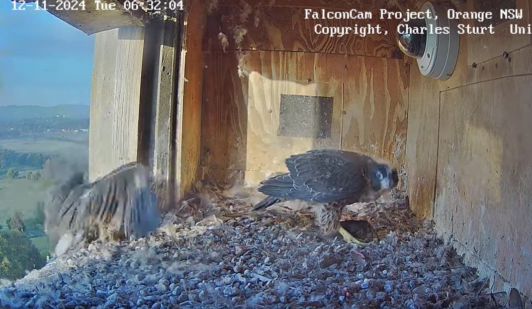 Was für ein Größenunterschied! Ich weiß nicht, ob es an der Kameraperspektive liegt, aber bei den hiesigen Jungfalken auf diversen Webcams ist mir das nie so aufgefallen. Vielleicht ist Yira auch eine besonders große Falkin und Garrama ein Terzelzwerg ![]()