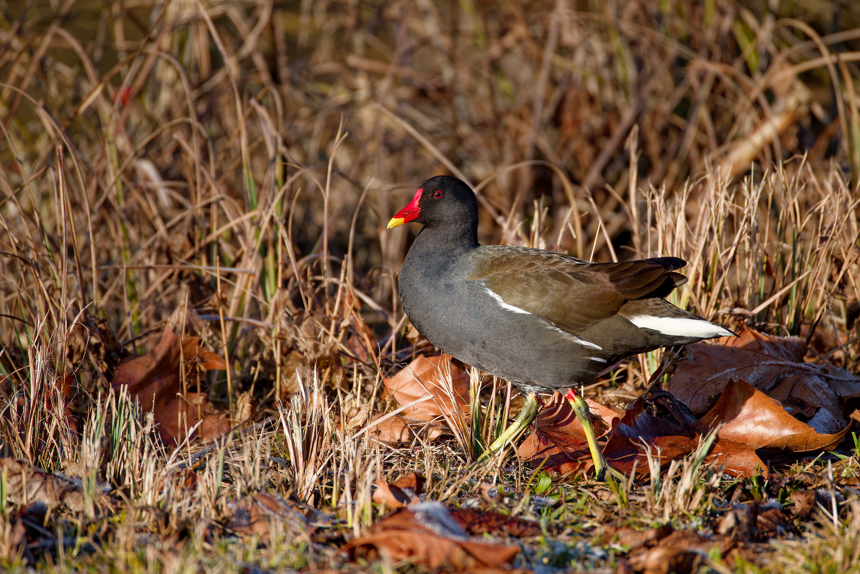 Ich kenne Teichhühner nur mit weißem Schabel