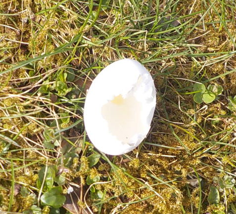 Von wem könnte das stammen? Es lag in der Nähe eines Totholzstamms, wo ich schon Buntspechte an / in einem Loch sah, aber dafür dürfte das Ei zu groß sein… ![]()