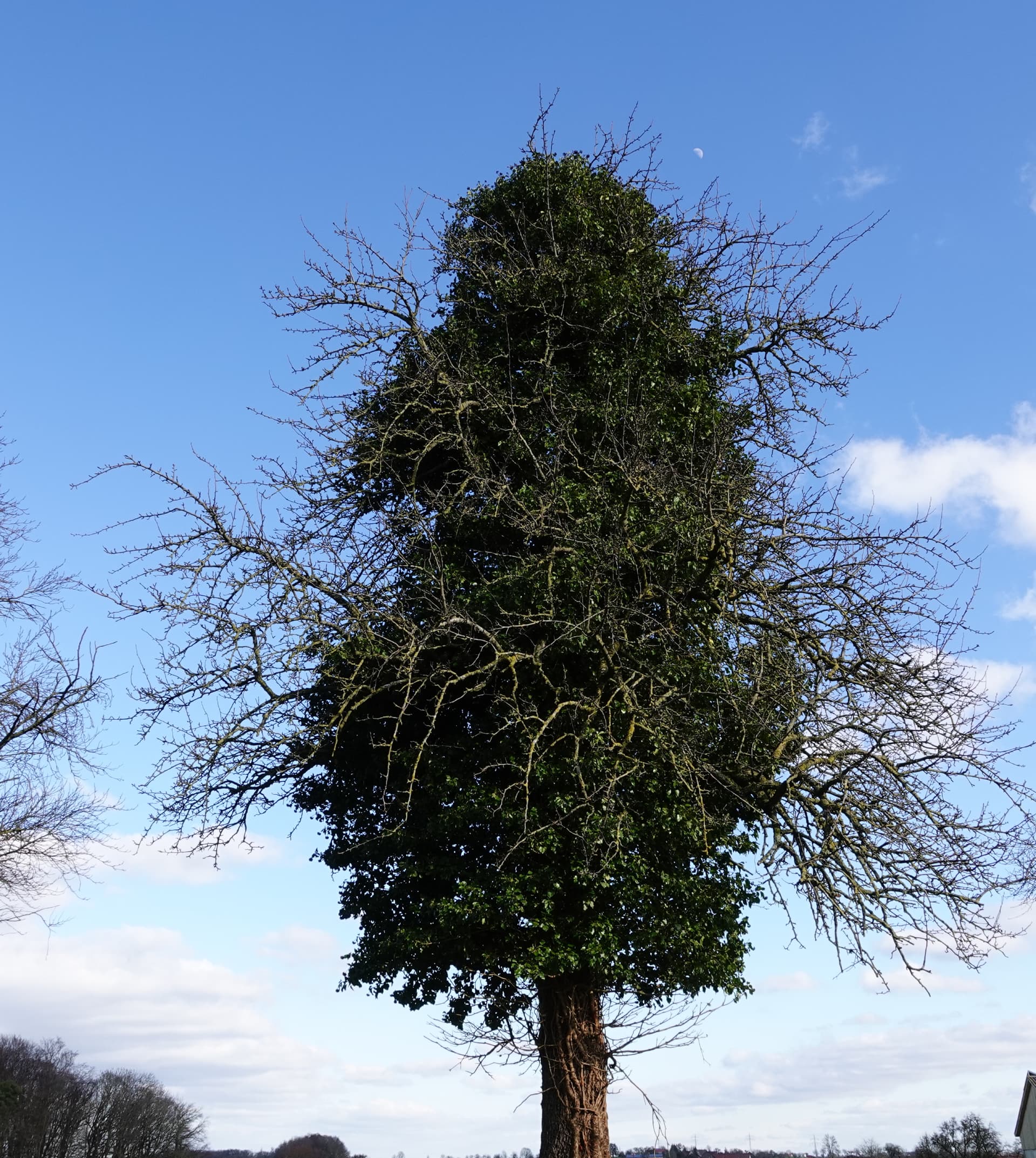 und der Baum wie ein alter Obstbaum mit noch älterem Efeu-Bewuchs ![]()